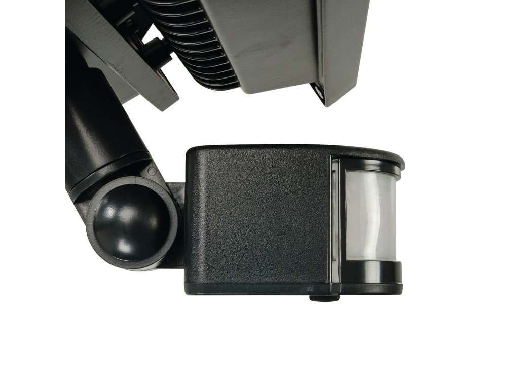 Langlebiges, pulverbeschichtetes Aluminiumgehäuse mit Schutzart IP65. 2.100 Lumen. Helle, energieeffiziente COB-LED, PIR-Sensor mit Erfassungswinkel und einstellbarer Empfindlichkeit. Einstellbare Position, keine Wärmeabgabe.