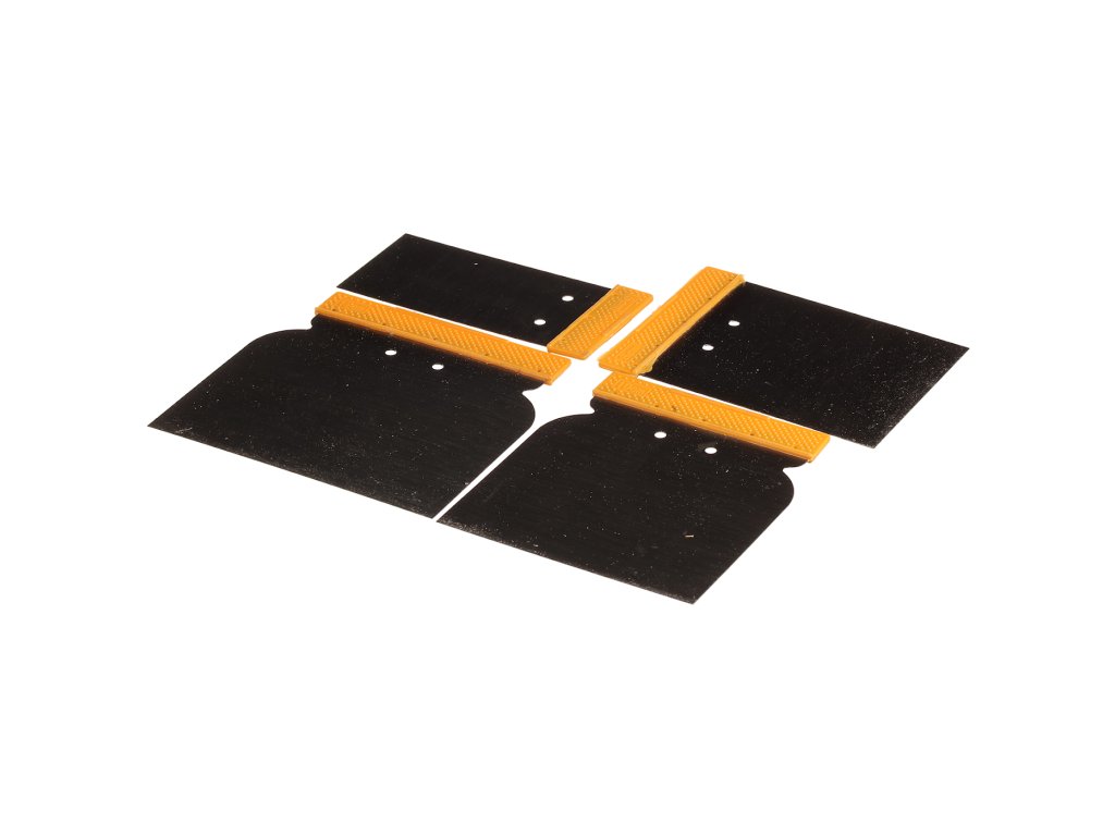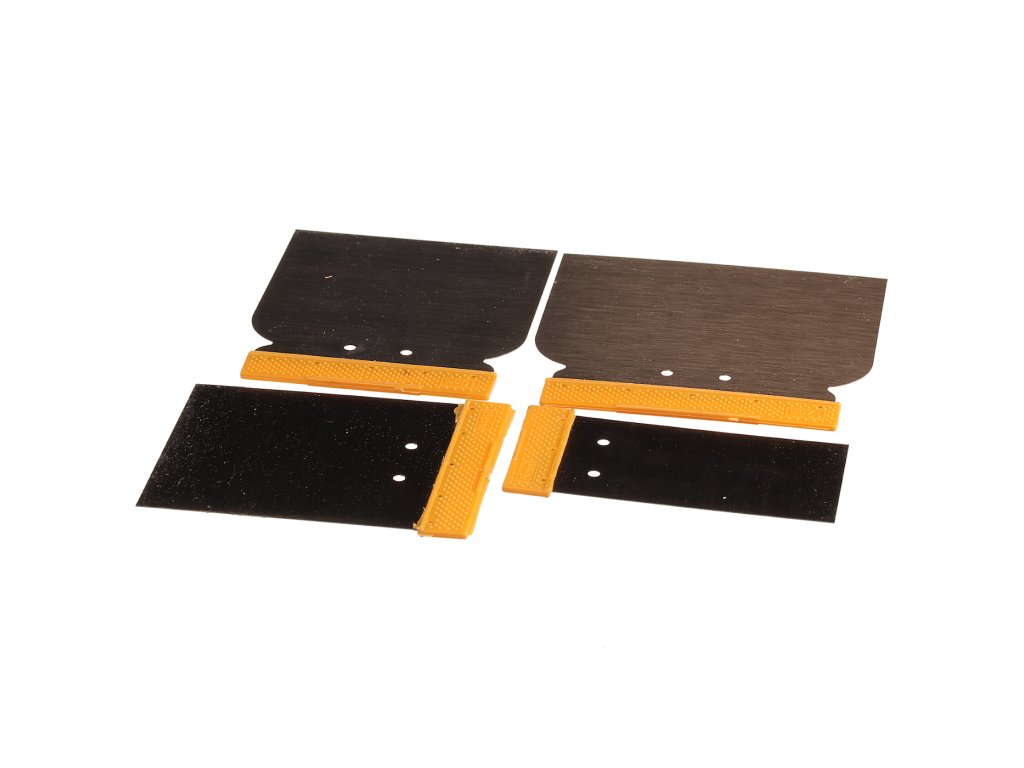 Stahlschaber-Set, mit Kunststoffgriff, zum vielfältigen Einsatz bei Bauarbeiten. Größen (Breite): 50, 80, 100 und 120 mm.