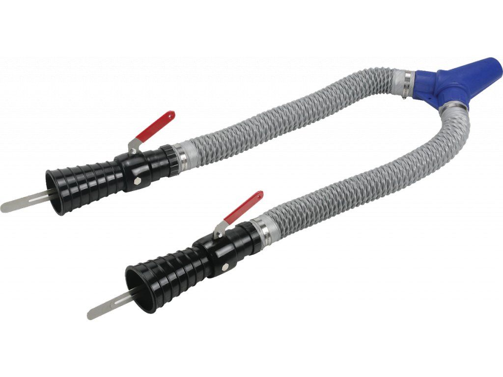 Aufsatz mit Schlauch zur Abgasführung für die Arbeit am Motorrad mit zwei Abgasrohren. Zur Verwendung mit Abgasabsauger AIRMOBIL Bestell-Nr. bestimmt. WH707B.