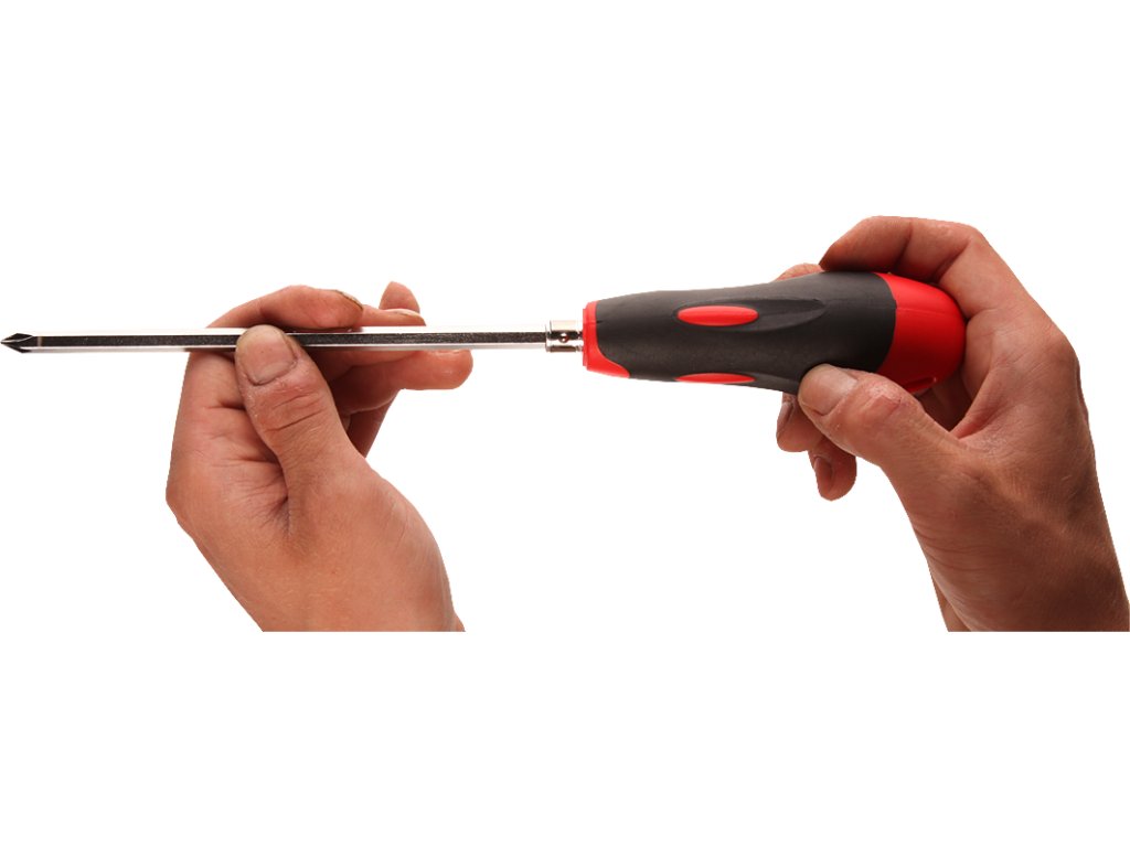 Beidseitige Bits 175 mm lang, Größen S4 + S6, S5 + S7, PH1 + PH2, PZ1 + PZ2, T10 + T15, T20 + T25, T30 + T40, H4, H5, H4 mm. Griff 1/4". In einer Kunststoffbox verpackt.