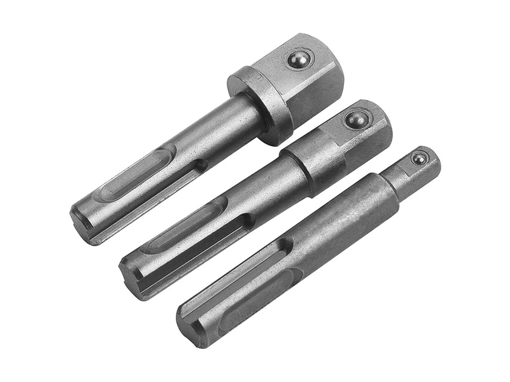 Set 3 St. Reduktionen mit SDS plus zum Vierkant 1/4"x65 mm; 3/8"x65 mm und 1/2"x 75 mm.