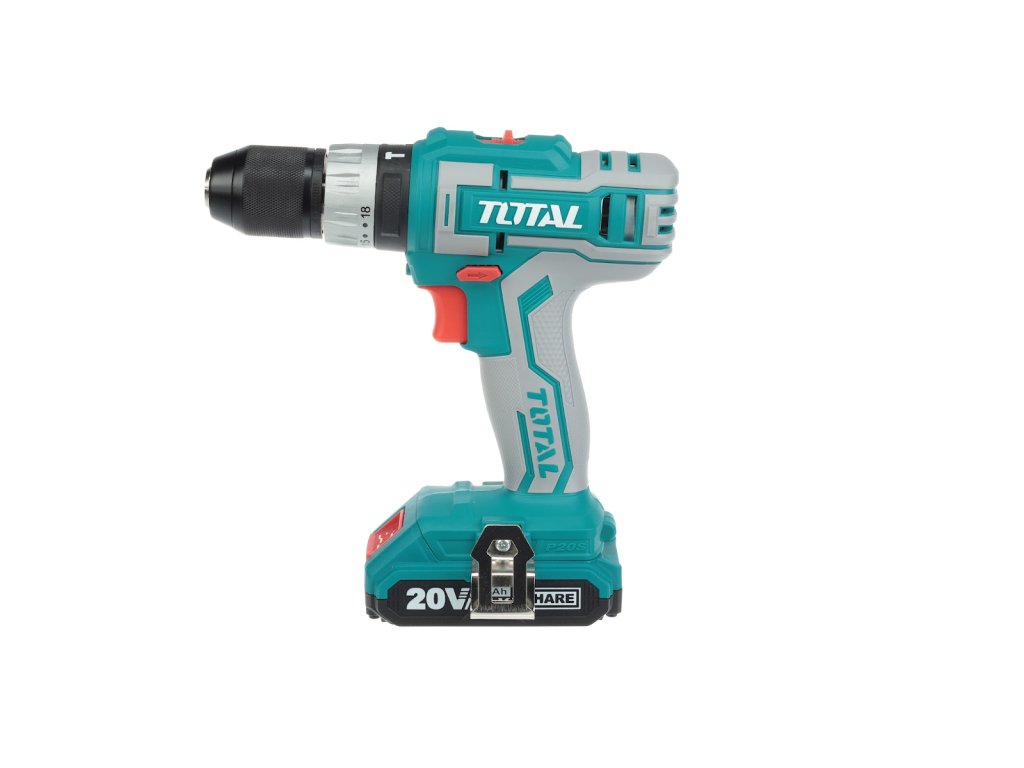 Leichter und leistungsstarker Zweigang-Akku-Bohrhammer mit hohem Drehmoment zum Bohren und Schrauben in Metall und Holz. Der Akku kann in allen 20 V Akku-Geräten der Total-Serie verwendet werden. Dank Li-Ionen-Technologie können die Akkus jederzeit wieder aufgeladen werden, ohne ihre Kapazität zu verringern. Auch ein Li-Ionen-Akku verliert durch Selbstentladung sehr langsam Energie und bleibt lange geladen.