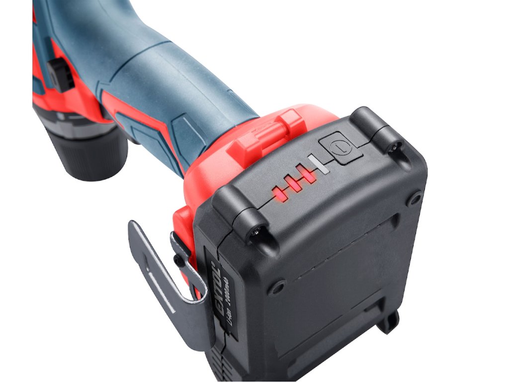Leichter und leistungsstarker Zweigang-Akku-Bohrschrauber mit hohem Drehmoment zum Bohren und Schrauben in Metall und Holz. Dank der Futterarretierung können Sie Bohrer ganz einfach mit einer Hand wechseln. Der Akku kann in allen 20 V Akku-Geräten der Extol Premium 88918xx Serie verwendet werden. Dank Li-Ionen-Technologie können die Akkus jederzeit wieder aufgeladen werden, ohne ihre Kapazität zu verringern. Der Li-Ionen-Akku verliert durch Selbstentladung sehr langsam Energie und bleibt lange geladen und einsatzbereit.
