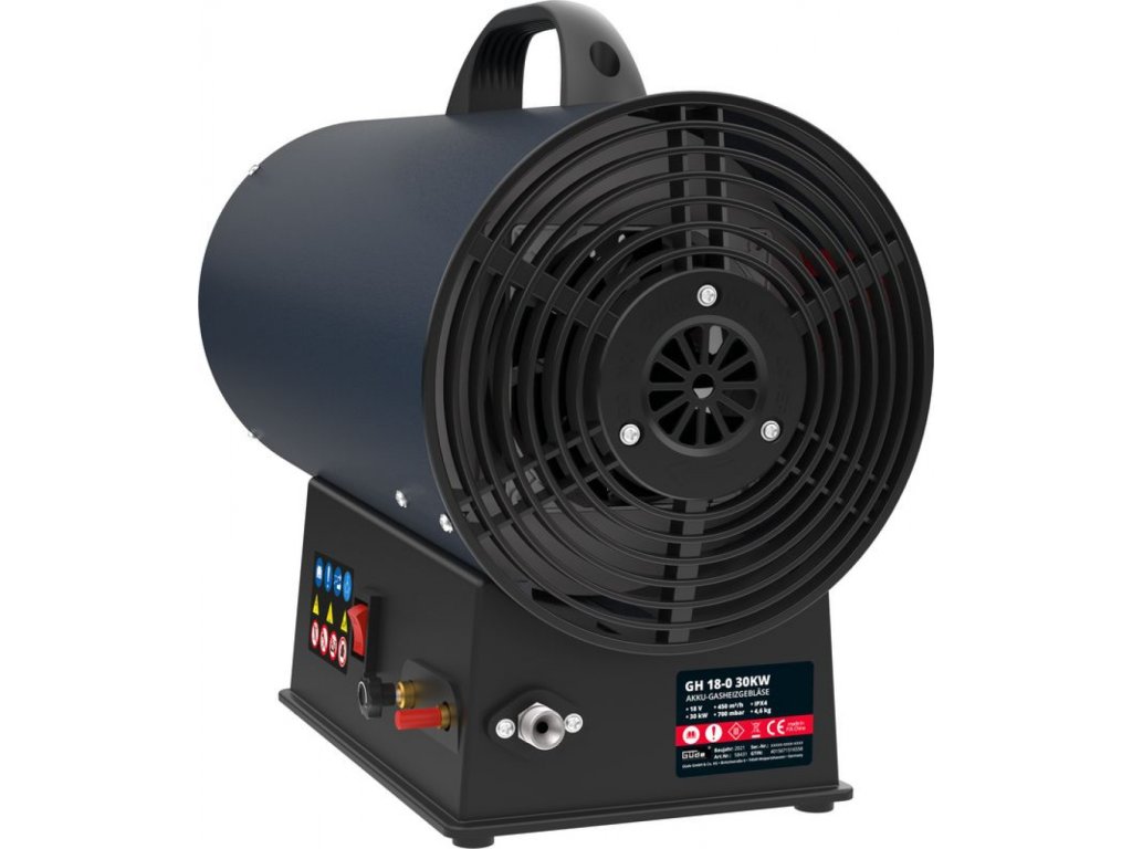 Präzise Einstellung der passenden Heizintensität über einen Gasregler (Bereich: 18 - 30 kW) • Betrieb mit Propan-Butan (max. Verbrauch: 2,2 kg/Stunde) • Dauer des Arbeitszyklus bei vollgeladener Batterie nach Ah ab *120min.