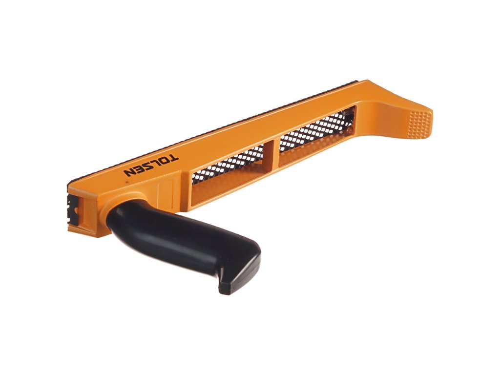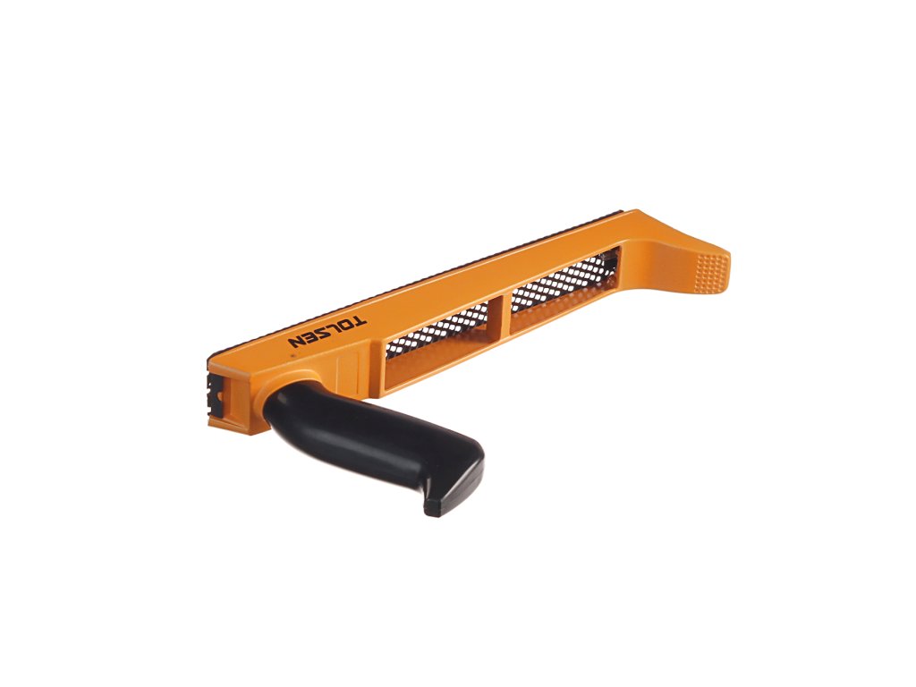 Hochwertiger Hobel, Gehäuse aus Aluminiumlegierung, Kunststoffgriff (ABS). Zur Anpassung von Gipskartonplattenkanten. Ersatzklingen (250x40 mm) unter der Bestellnummer 42008 bestellbar.