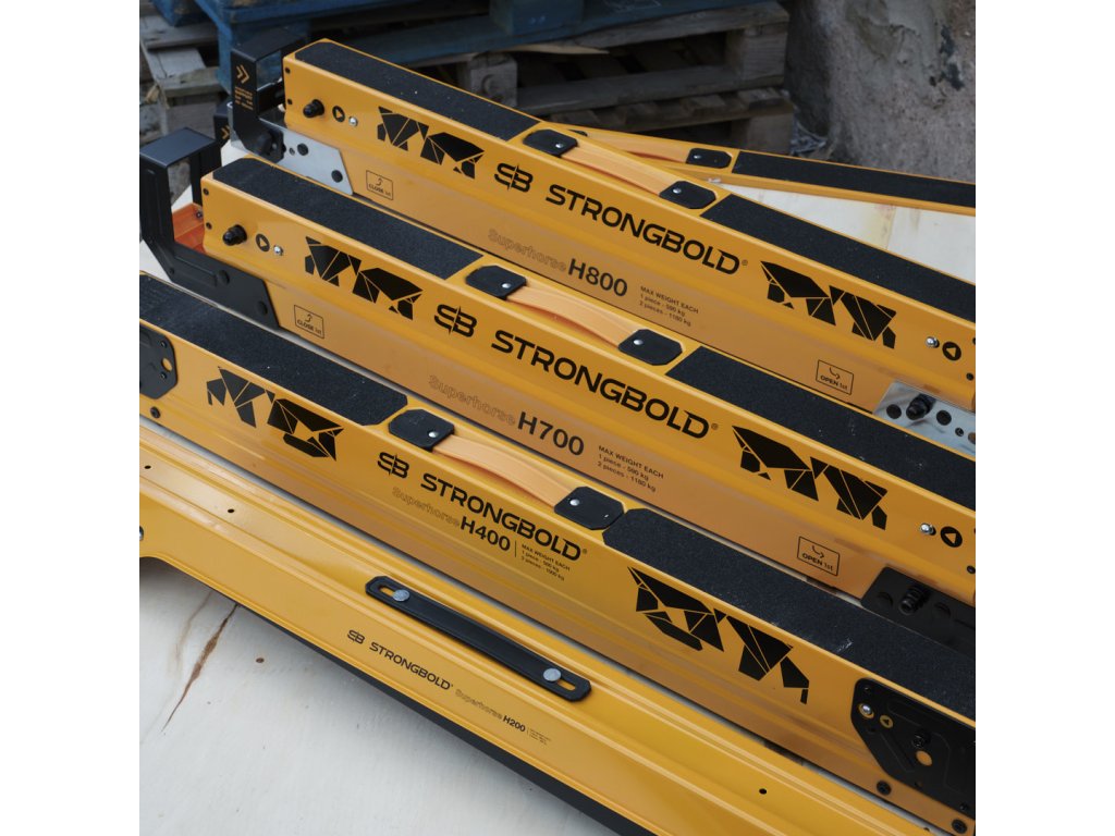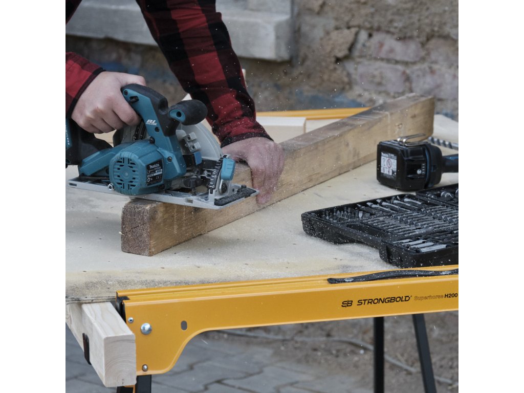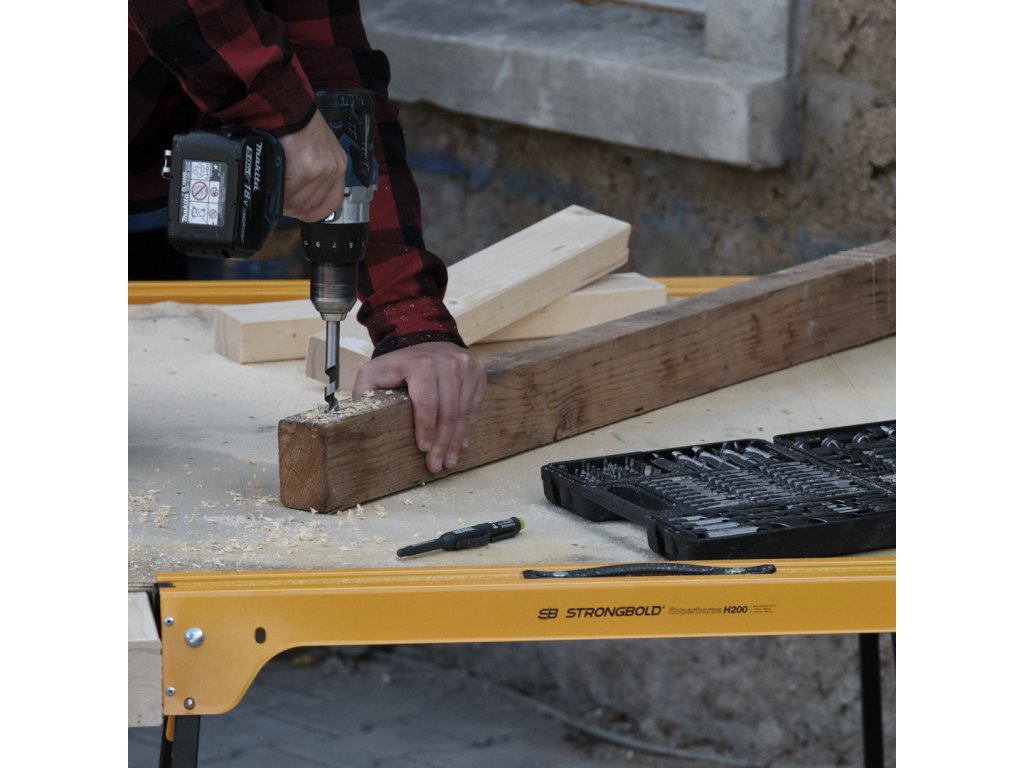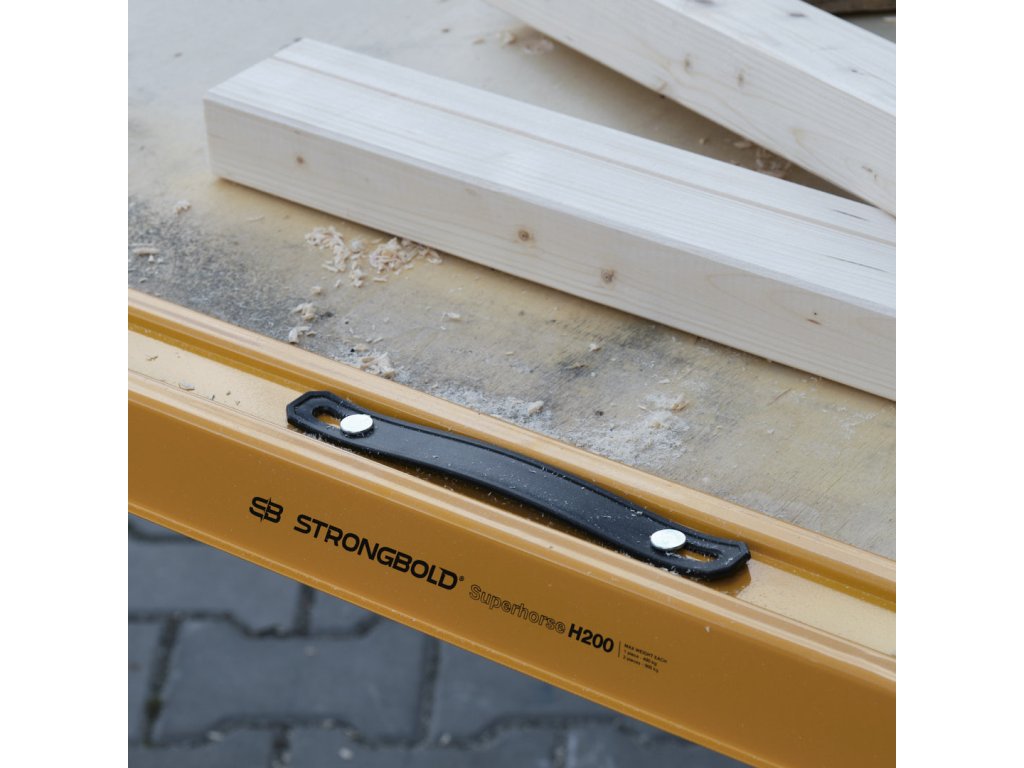 Bringen Sie Ihre Arbeitsprojekte mit Strongbold auf eine neue Ebene. H200 eignen sich für Heimwerker, die eine universelle Arbeitsfläche immer griffbereit haben möchten. Dank der abnehmbaren Arme eignen sie sich zum Schneiden von Balken und Baumstämmen. Schweres Material kann unbesorgt darauf abgelegt werden und sie lassen sich im Handumdrehen zusammenfalten und überall hinstellen.