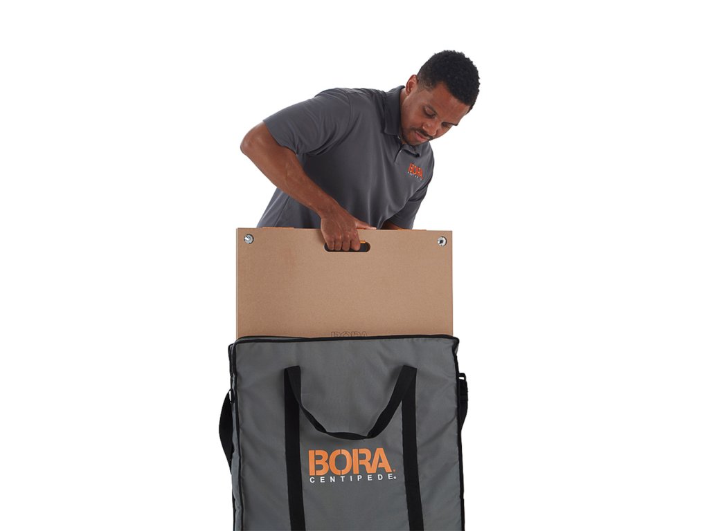 Langlebige und stabile Arbeitsplatte für den BORA Tausendfüßler. Der praktische Griff erleichtert das Bewegen. Maximale Tragfähigkeit einer Platte 907 kg. Kann mit Stahlklammern fest am Tausendfüßler befestigt werden, um maximale Festigkeit, Steifigkeit und Stabilität zu gewährleisten.