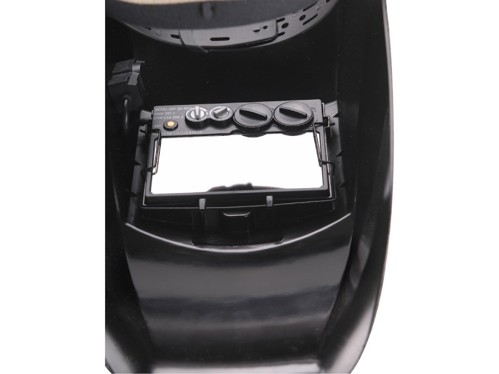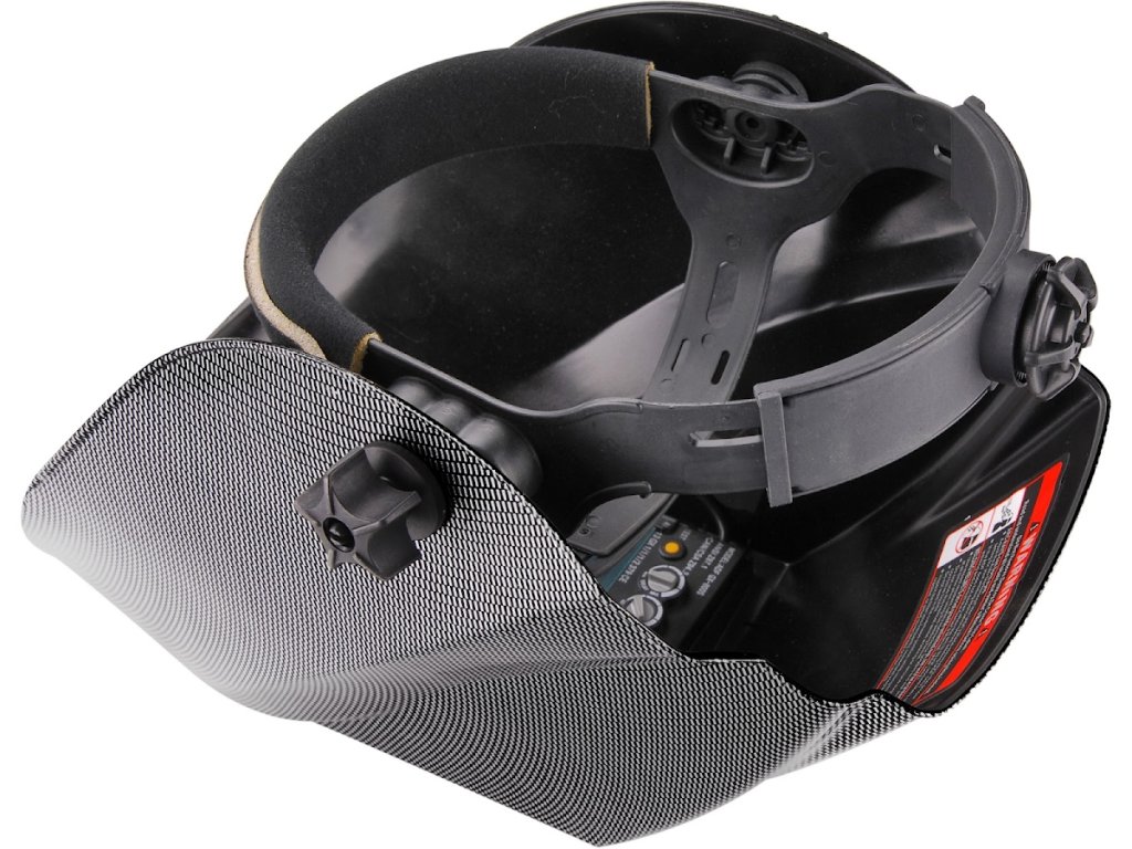 Die Haube ist so konzipiert, dass sie die Augen und das Gesicht beim Schweißen und Schleifen schützt. Der Benutzer kann die Arbeit weiterhin sehen und muss die Haube während der Arbeit nicht anheben. Die Intensität der Filterverdunkelung kann je nach Schweißstrom stufenlos eingestellt werden.