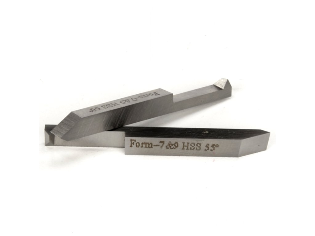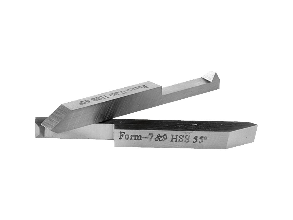2 beidseitige Gewindemesser für Innen- und Außengewindeschneiden 6 × 6 × 65 mm aus HSS-Stahl, Spitzenwinkel 55° und 60°.