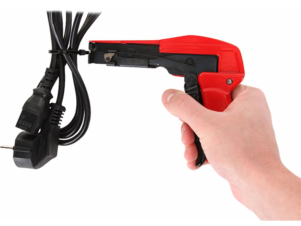 Zum einfachen und schnellen Binden des Kunststoffbindungsbandes um den Leiterbündel oder um andere Gegenstände, mit anschließendem automatischen Abschneiden des Rests. Für Banddicke bis 1,6 mm a -breite 2,2 – 4,8 mm geeignet. Krafteinstellung durch Rad im Griff.