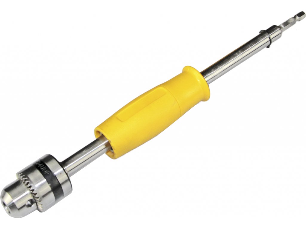 Přípravek pro usnadnění práce při vrtání a šroubování v úzkých nebo špatně přístupných místech. Díky posuvné nylonové rukojeti, se nepřenáší boční síla na vrták, čímž se zabrání ohnutí vrtáku nebo jeho případnému zlomení. Výrobek je opatřen