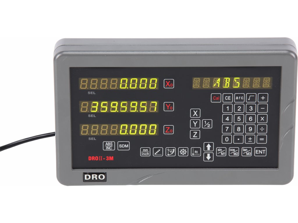 Digitaler Ausgang für die Werkzeugpositionanzeige bei den programmierbaren Bearbeitungsmaschinen, konkret bei Fräsmaschinen. Anzeige der Koordinaten X, Y, Z. Spannungsversorgung 230 V, Strom 50 mA, Arbeitstemperatur 0 – 45°C, Lagertemperatur -30 – 70°C, relative Feuchte <90%, Abmessungen 310 × 195 × 80 mm, Frequenz Eingangssignal <100 kHz, einstellbare Auflösung 10 µm, 5 µm, 2,5 µm, 2 µm, 1 µm, 0,5 µm und 0,1 µm nach dem verwendetem Lineal.
