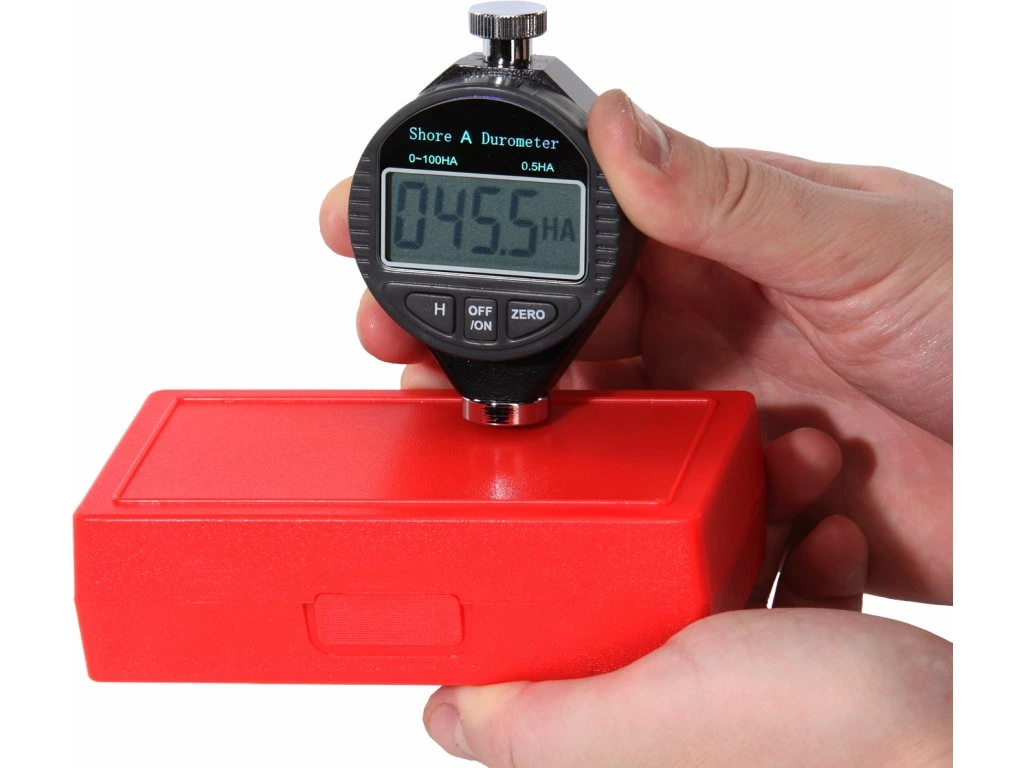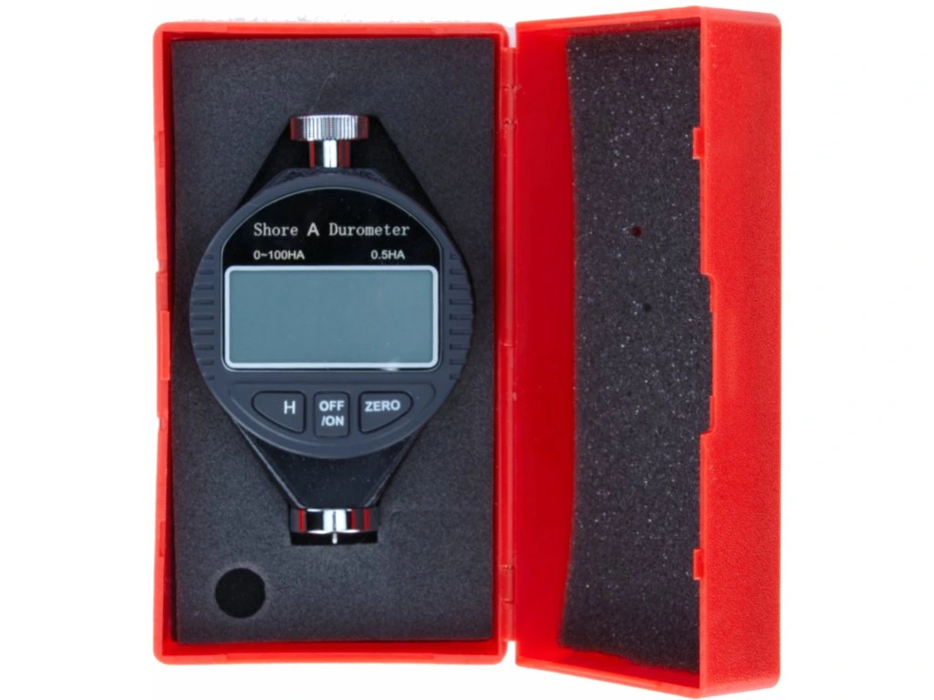 Zur Härtemessung von weichen Kunststoffen, Gummiwerkstoffen und ähnlichen nach der Dorneindringtiefe nach dem Shore-A-Verfahren. Bereich 0 – 100 HA; Auflösung 0,5 HA; Messdorn-ø 0,79 mm.