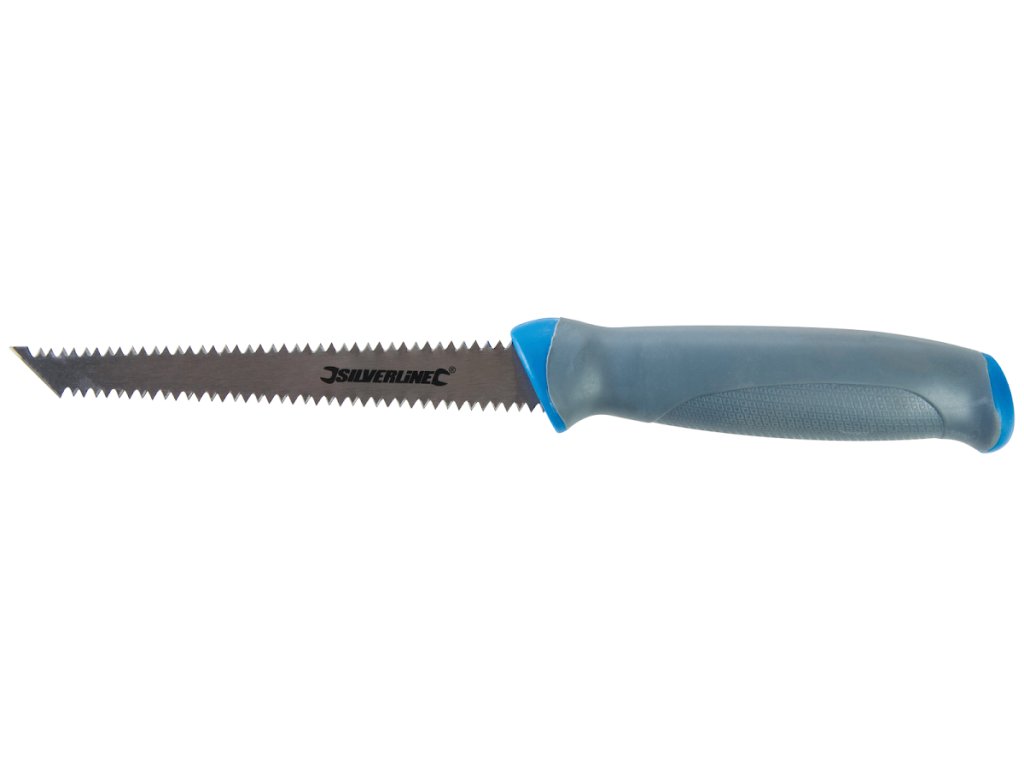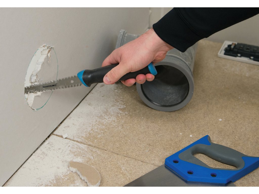 Extra scharfe Zähne und spitzes Ende zum Perforieren von Trockenbauwänden. Ideal für die Montage von Steckdosen und Lampen. Komfortabler Kunststoffgriff.