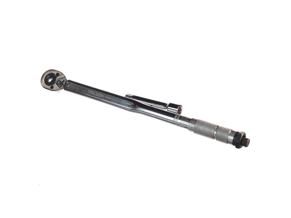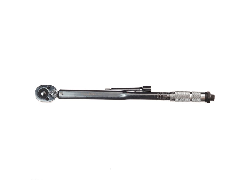 Genauigkeitsabweichung ± 4%. Drehmomentbereich: 40 – 210 Nm. Schlüsselabmessungen 470 × 50 mm. Aufsatz 1/2" × 125 mm im Lieferumfang enthalten. In einer Kunststoffbox verpackt.