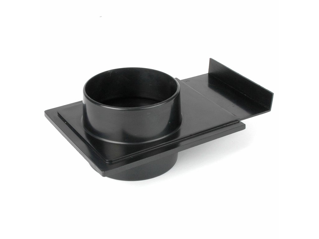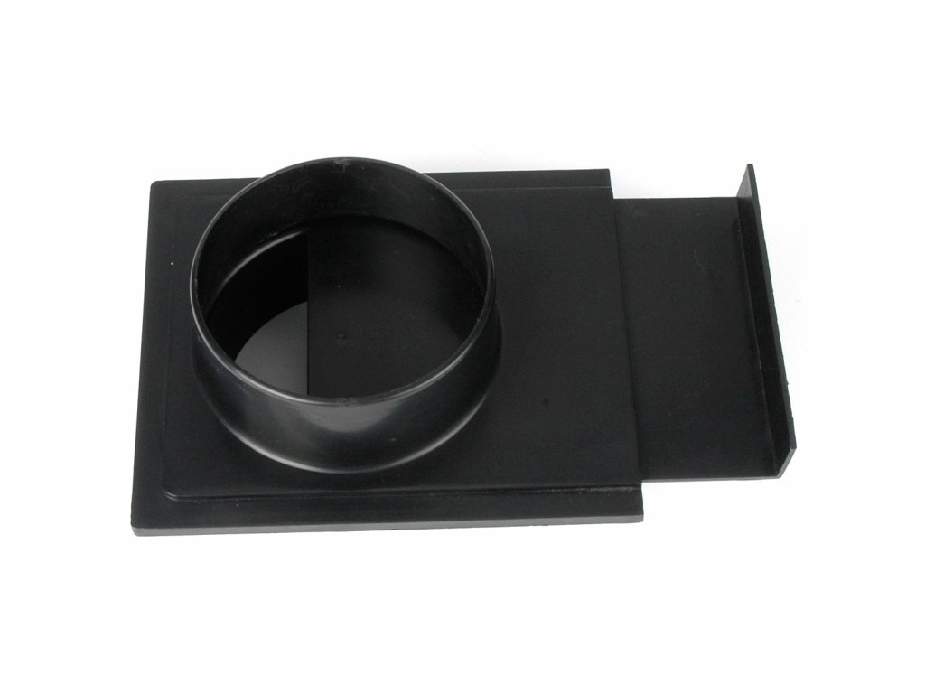 Kunststoff-Drosselklappe zum Absaugen, für Schlauchdurchmesser 100 mm bestimmt.