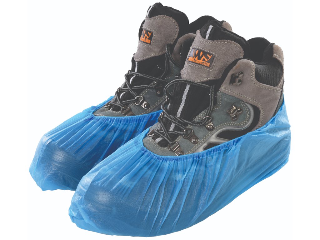 CPE-Schuhüberzieher (Polyethylenchlor) mit elastischem Saum. Resistent gegen Feuchtigkeit, Spritzer und Schmutz. Strukturierte Oberfläche für besseren Halt. Einheitsgröße. Lieferung in praktischer Dosierbox.