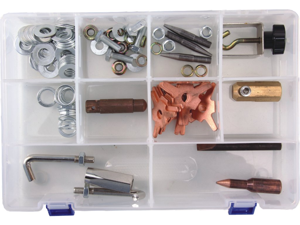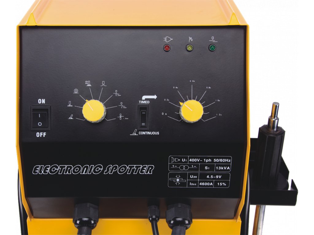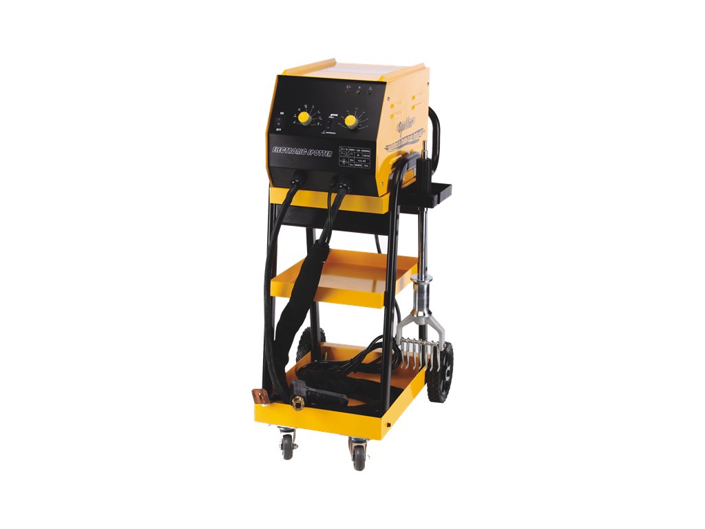 Mehrzweck-Punktschweißgerät für effektive Reparaturen der Karosserieunebenheiten von einer Seite. Zum einseitigen Punktschweißen, Widerstandspunktschweißen und Punktschweißen der Ausziehscheiben, Welltafeln, Schrauben und Nadeln. Die Einrichtung ist mit verfahrbarem Tisch und reversiblem Hammer ausgestattet. Spannungsversorgung 400 V/50 Hz, Ausgangsspannung 4,5 – 9,5 V, max. Momentanstrom 4 600 A.