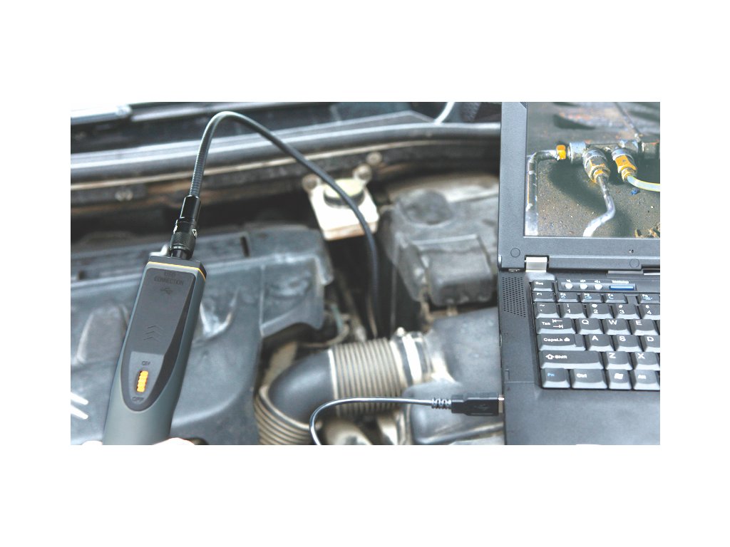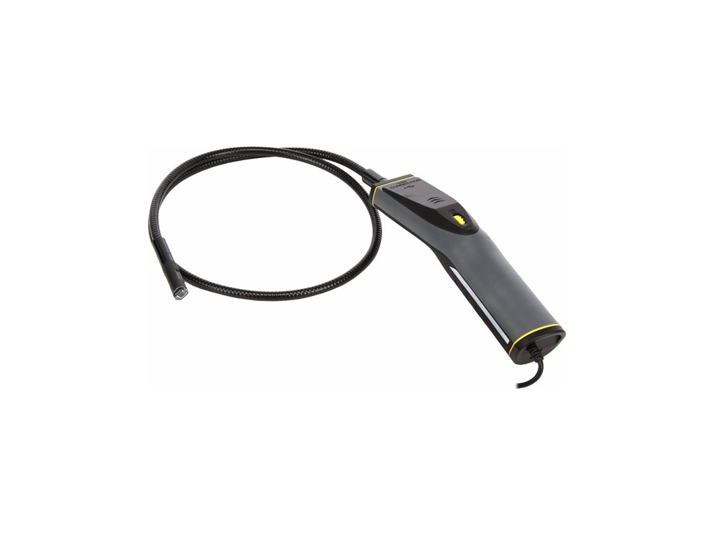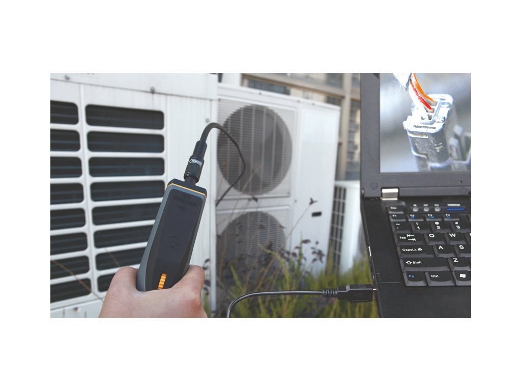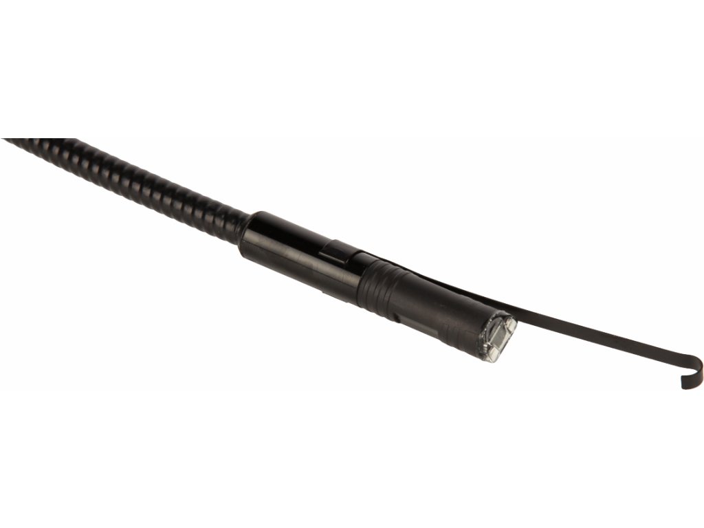 Einfache Übertragung an den PC über die USB 2.0 Schnittstelle. Arbeiten auch in feuchter Umgebung möglich. LED-Beleuchtung im Sondenkopf. Beobachtungswinkel der Kamera 60°, Brennweite 50 mm, flexible Sonde, Länge 1 m, Kopf ø 12 mm, Schutzart der Sonde IP67. Spannungsversorgung über USB, Betriebstemperatur 0 – 45 °C. Im Lieferumfang enthalten ist ein Magnet, ein Haken zum Bergen von kleinen Gegenständen, ein Spiegel.