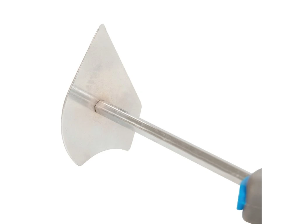 Korrosionsbeständige Klinge aus Federstahl. Zweifarbiger, weicher, konturierter Griff. Zum Entfernen von Farben und Klebstoffen von flachen, konkaven und konvexen Formen. Ausgestattet mit einem Loch zum Aufhängen.