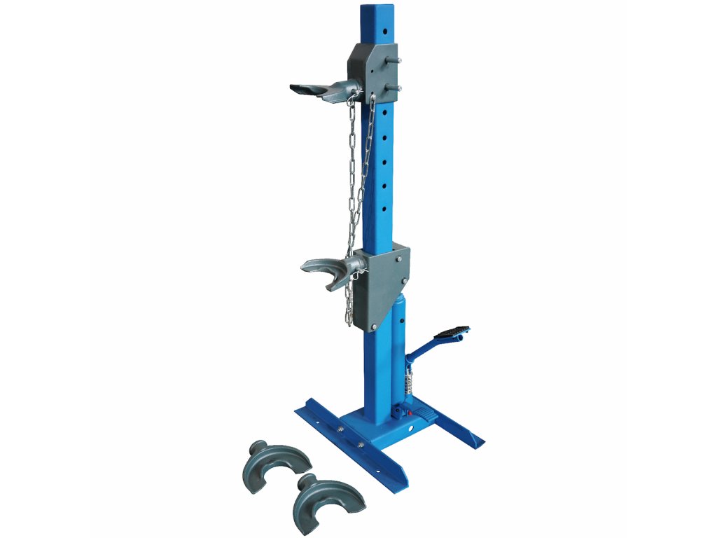 Ein idealer Helfer beim Austausch oder der Reparatur von Stoßdämpfern. Kein Kraftaufwand dank Hydraulikzylinder, geeignet für Federdurchmesser 102 – 139 mm, Hub 325 mm, max. Arbeitslänge 440 mm, Pedalsteuerung.