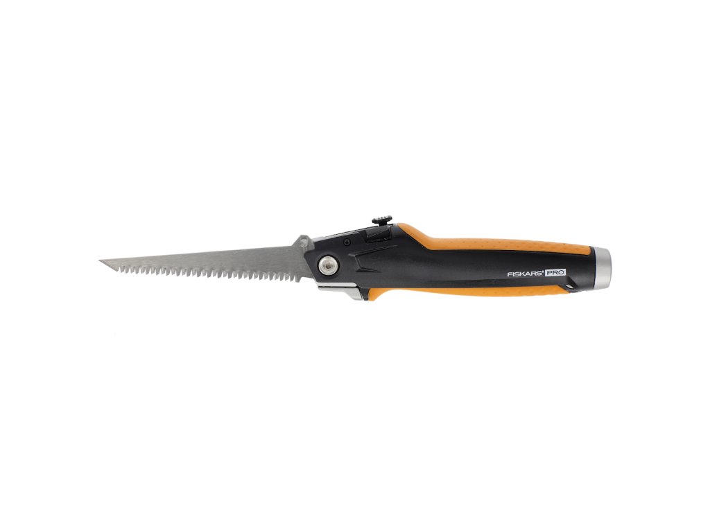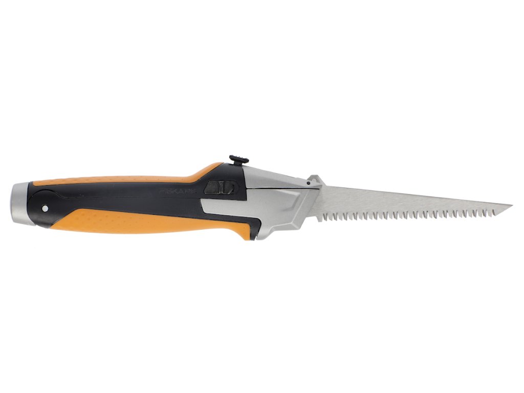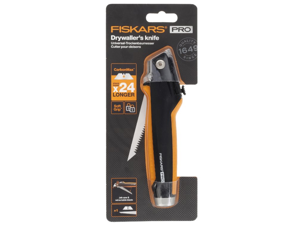 Das Universalmesser ist für Trockenbauer geeignet. Es enthält zwei der am häufigsten verwendeten Trockenbauwerkzeuge: ein Allzweckmesser und eine Säge zum einfachen Schneiden von Trockenbauwänden. Beide Klingen befinden sich am gleichen Ende des Werkzeugs und rasten für zusätzliche Sicherheit ein. Der Griff ist aus Metall für optimale Balance und Haltbarkeit, und das Ende besteht aus gehärtetem Metall, das zuverlässige Beständigkeit gegen Stöße und Stürze bietet. Er verfügt über ein Magazin zur Aufbewahrung von 3 Klingen. Höhe: 30 mm, Länge: 260 mm, Breite: 109 mm, Gewicht: 234 g. Garantie: 5 Jahre.