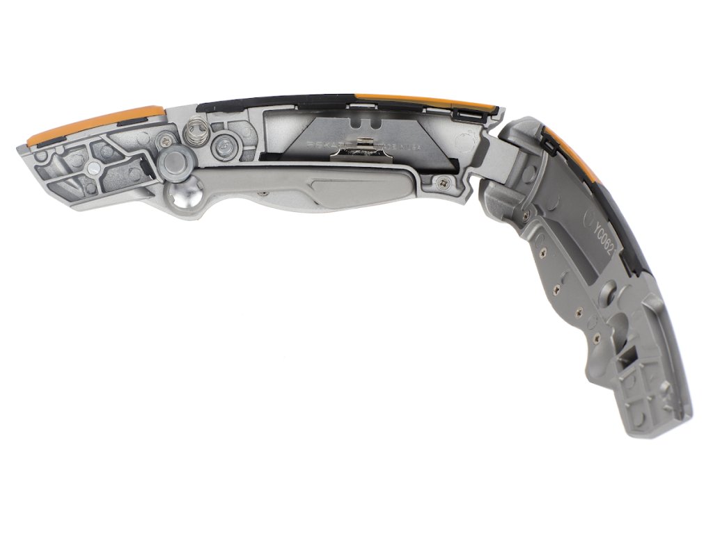 Das Universalmesser mit feststehender Klinge lässt sich schnell und sicher mit einer Hand bedienen. Er verfügt über einen ergonomischen Griff mit SoftGrip-Technologie. Enthält eine einzigartige klappbare Klingenabdeckung für maximale Sicherheit. Der Griff ist aus Metall für optimale Balance und Haltbarkeit, und das Ende besteht aus gehärtetem Metall, das zuverlässige Beständigkeit gegen Stöße und Stürze bietet. Er verfügt über ein Magazin zur Aufbewahrung von 5 Klingen. Höhe: 30 mm, Länge: 259 mm, Breite: 109 mm, Gewicht: 232 g. Garantie: 5 Jahre.
