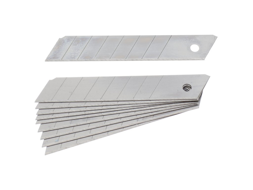 Die Ersatzklingen sind für Abbrechmesser mit einer Breite von 18 mm geeignet. In der Packung befinden sich 10 Klingen, die in einer praktischen Kunststoffbox mit Öse zum Aufhängen verpackt sind.