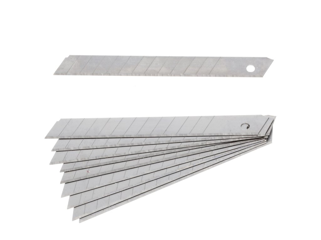 Die Ersatzklingen sind für Abbrechmesser mit einer Breite von 9 mm geeignet. In der Packung befinden sich 10 Klingen, die in einer praktischen Kunststoffbox mit Öse zum Aufhängen verpackt sind.
