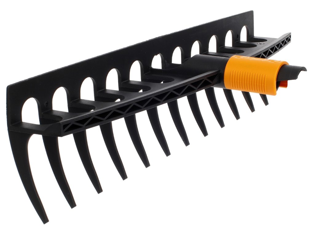Der Universalrechen eignet sich zum Harken von Gras, Unkraut, Moos, Bodenbearbeitung und zum Vorbereiten von Beeten für die Aussaat. Sie haben 12 Zähne aus starkem FiberComp-Verbundmaterial. Das QuikFit-System ermöglicht es Ihnen, verschiedene Gartengeräte mit einem einzigen Griff zu kombinieren. Breite: 410 mm, Länge: 152 mm, Gewicht: 260 g. Original Fiskars Nummer: 135051.