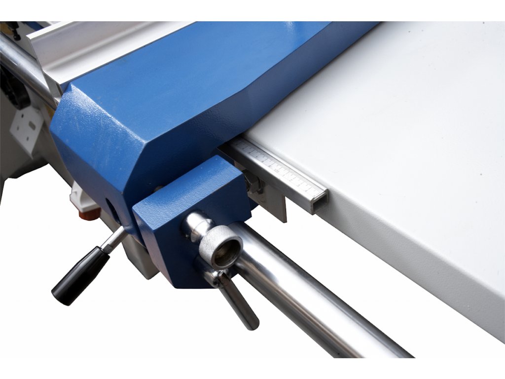 Diese Formatsäge ist zum Schneiden der Werkstoffe auf Holzbasis, ABS-Platten, PVC und Werkstoffe mit ähnlichen Eigenschaften bestimmt. Massiver Mobiltisch aus hochwertiger Alu-Legierung mit leichtem Kugelverfahren für Komfort und Arbeitsgenauigkeit. Scheiben- und Vorschnittneigung wird am Winkelmesser der Bedienungstafel angezeigt. Spannungsversorgung 400 V, Hauptscheibe 300 × 3,2 × 30 mm, Drehzahl 4 000/6 000 U/min., Leistungsaufnahme 4 kW, Vorschnittscheibe 120 × 20 mm, Drehzahl 8 000 U/min., Leistungsaufnahme 0,75 kW, Verschnitt 70 mm bei 90° und 55 mm bei 45°, Scheibenneigung 0 – 45°, Tischmaße 2 500 × 360 mm, max. Länge des bearbeiteten Materials 2 500 mm, max. Teilbreite 1 250 mm. Abmessungen 2.500 × 3.150 × 900 mm.