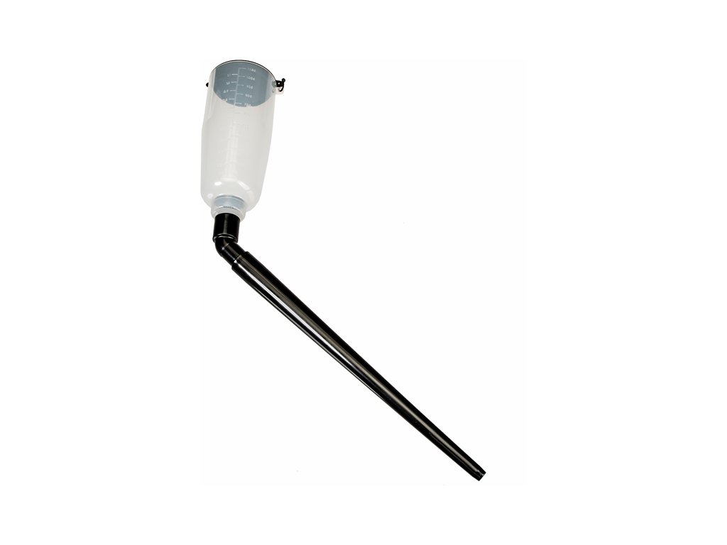 Zum Nachfüllen von Betriebsflüssigkeiten wie Öle, Bremsflüssigkeit, Kühlflüssigkeit usw. im Fahrzeug geeignet. Material PP, Temperaturbeständigkeit 0 – 100 °C, Aufsatzlänge 365 mm. Behälter mit Skala 200 – 1 100 ml (0,2 – 1,1 l) und Deckel.