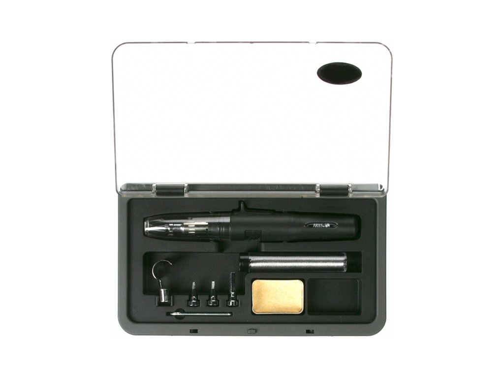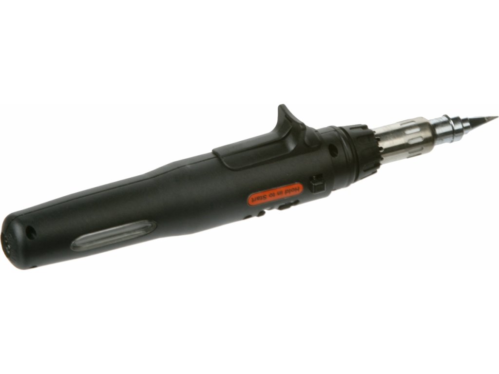 Praktische Multifunktions-Gaslötlampe, zum Löten von Kreisen und Teilen, wo keine elektrische oder Trafo-Lötlampe (wegen Induktion oder wenn keine Stromquelle vorhanden ist) benutzt werden kann, geeignet. Neben dem Metalllöten kann sie auch kleine Teile erwärmen, z-B. bei Biegen, Pressen und Abbrennen mit direkter Flamme. Gerade Ausführung ist besonders zum Elektroniklöten geeignet. Inhalt der Verpackung: Kegeldüse 0,6 mm; Beitel 2,6 mm; Heißmesser; Führungsblech zur Materialerwärmung; Schraubendreher und Lötdraht. Übersichtlich im Kunststoffkoffer verpackt. Füllung: Gas für Anzünder.
