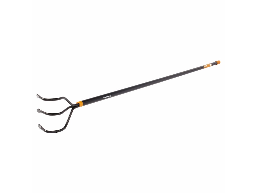 Der Grubber eignet sich zum Kultivieren und Belüften von Beeten vor der Aussaat. Die Klinge besteht aus gehärtetem Kohlenstoffstahl, der Griff aus Aluminium. Breite: 117 mm. Länge: 1640 mm. Gewicht: 660 g. Original Fiskars Nummer: 135714.