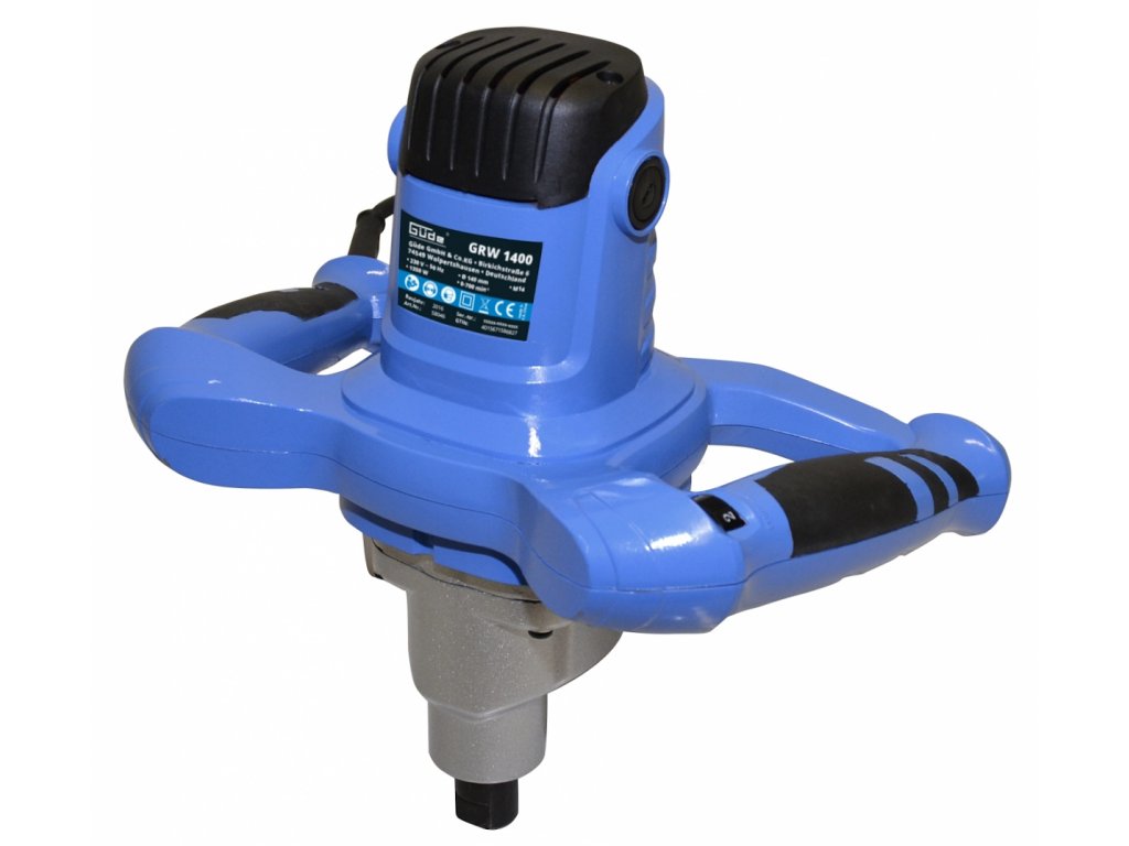 Praktischer Mischer, bestimmt zum Mischen von pulverförmigen Baustoffen (→ Mörtel/Beton/Putz), Farben, Lacken etc. (→ max. Mischvolumen: 65 l).