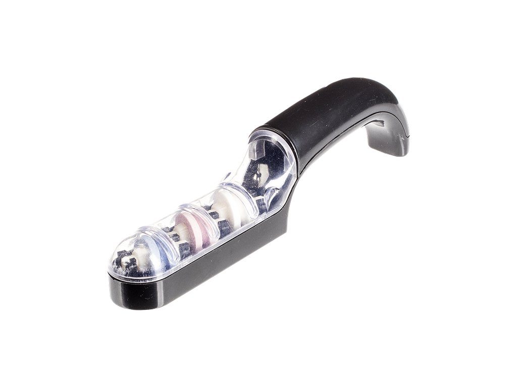 Einfache Verwendung in drei aufeinanderfolgenden Schritten mit weißer (Körnung 120), rosaner (150) und blauer (180) keramischer Schleifscheibe im Kunststoffhalter, der davor mit Wasser gefüllt wird. Im Blister verpackt geliefert.