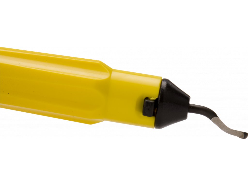 Handentgrater mit Kunststoffgriff und Schneide aus hochwertigem Schnellschneidestahl, im Griff gibt es Raum zur Aufbewahrung von insgesamt 6 Wechselschneiden.