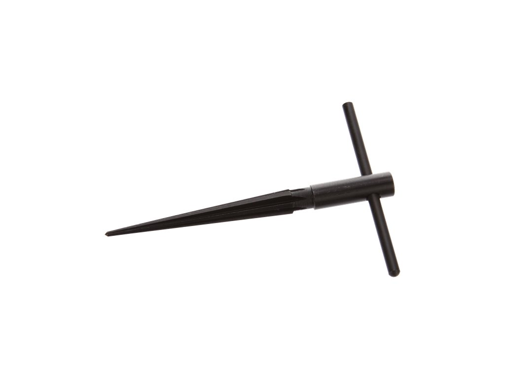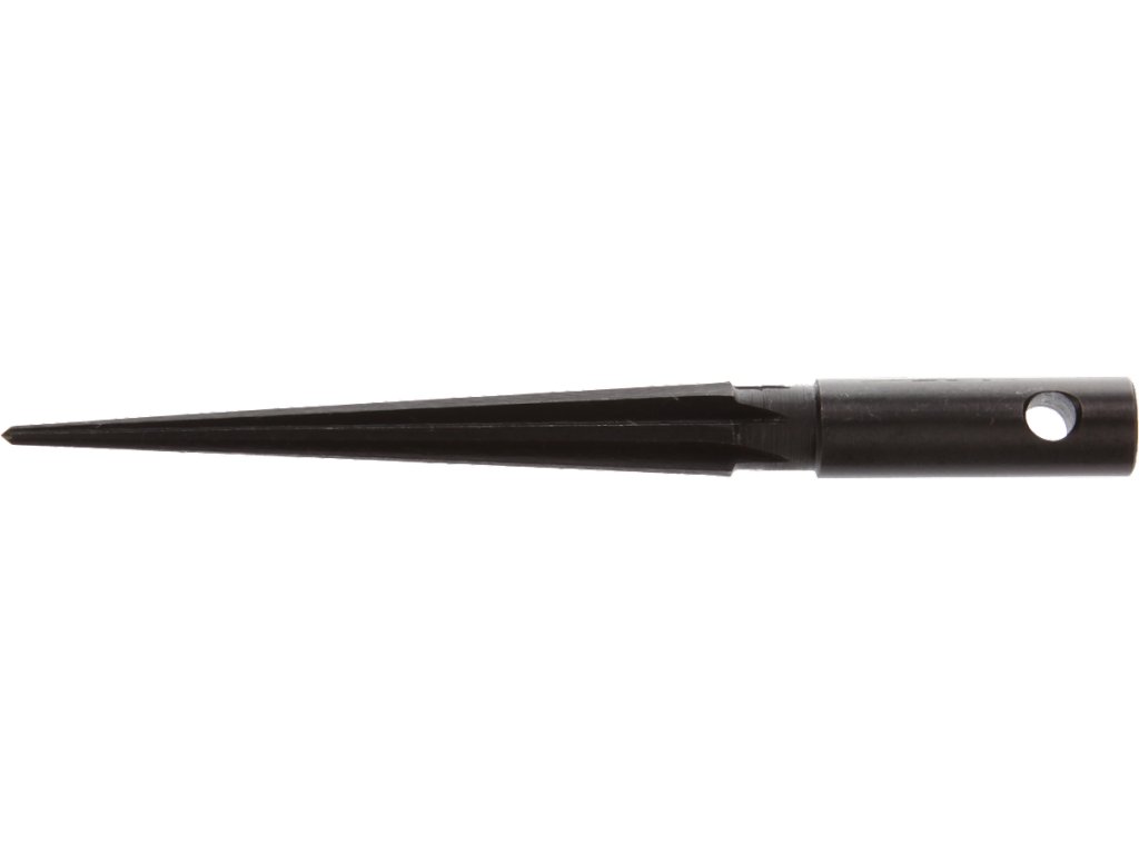 Kegelförmige mehrschneidige Handreibahle mit Bohrung für die Stange im Schaft. Schneidendurchmesser klein 3 mm, groß 13 mm, Winkel 3°, Schaftdurchmesser 13 mm. Material Stahl 14109.