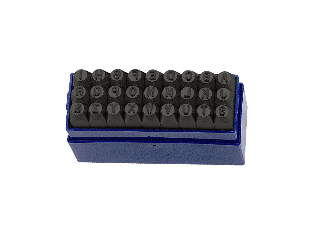 Markierersatz aus gehärtetem Stahl. Buchstabenhöhe 5 mm, geschwärzt.