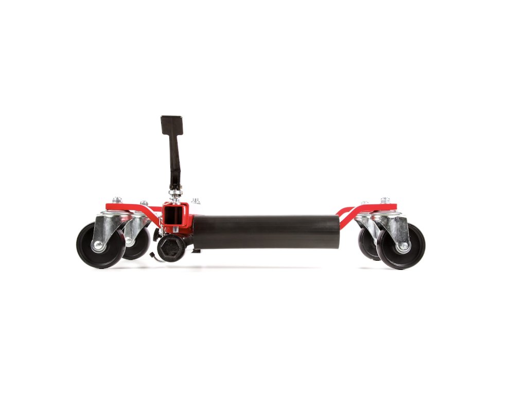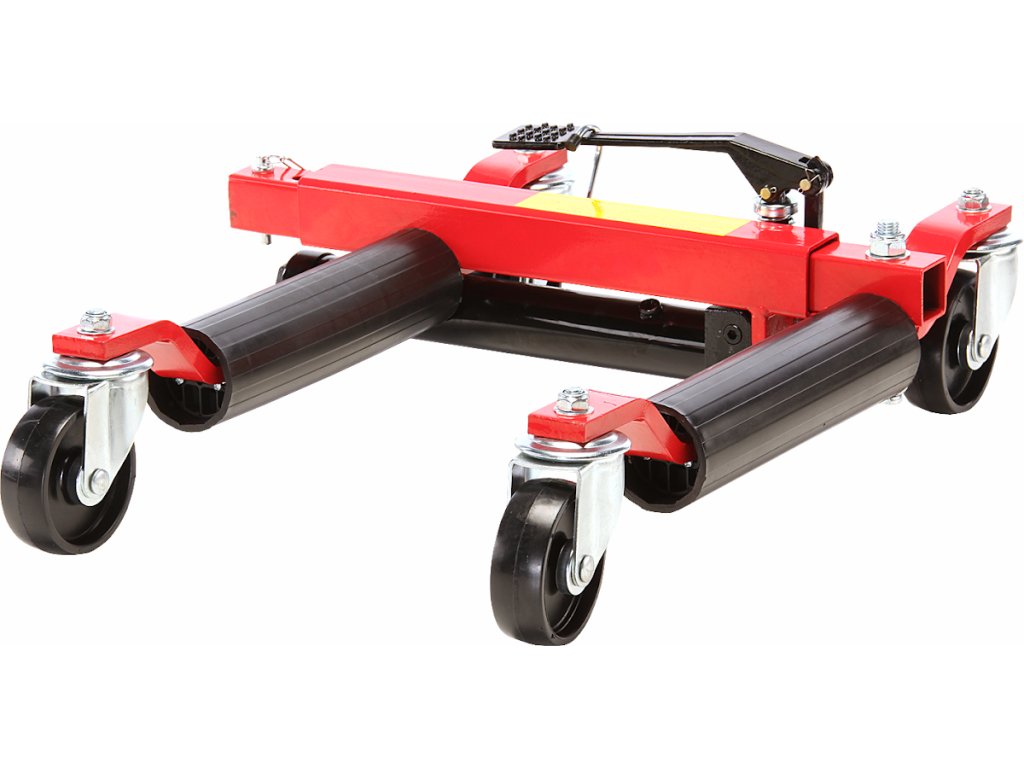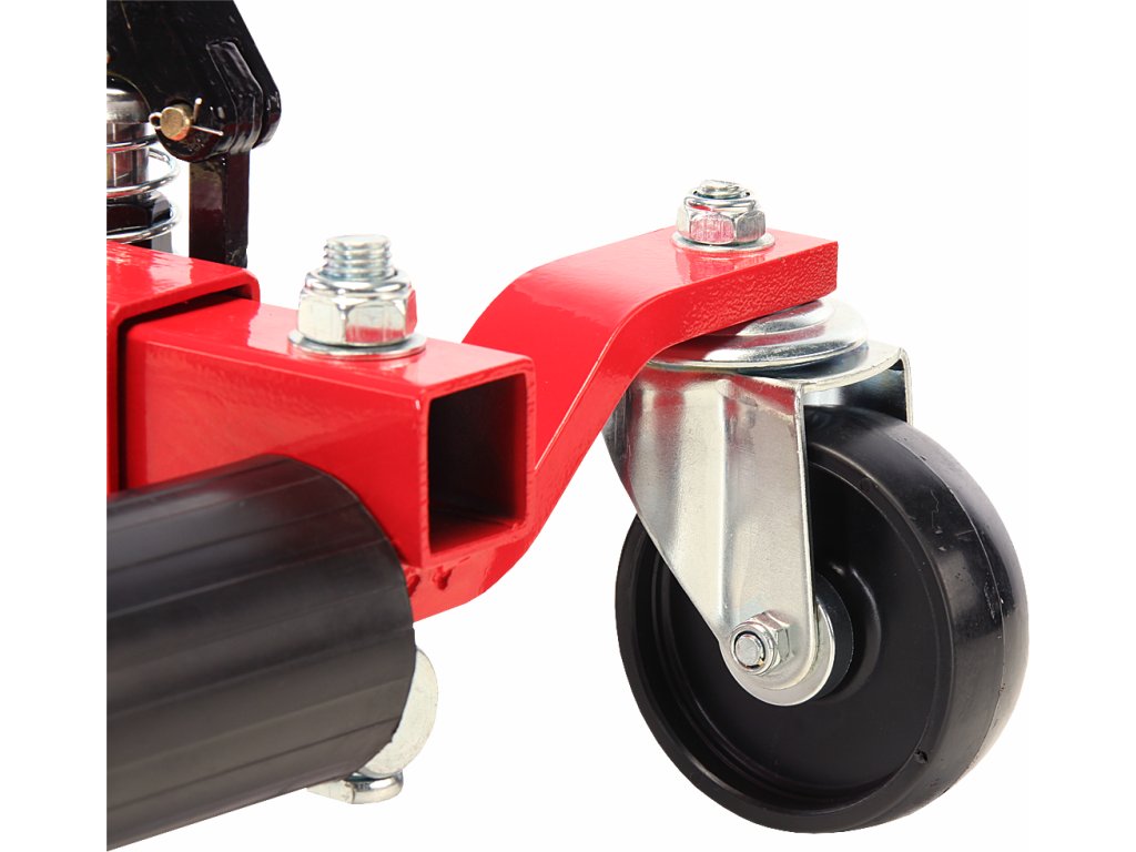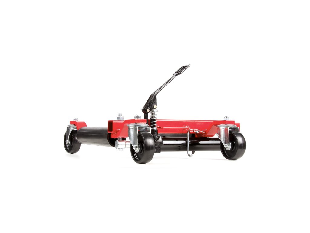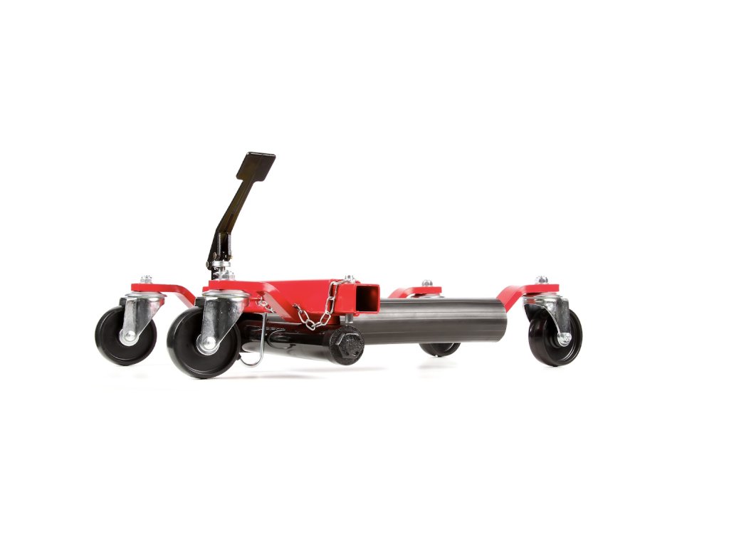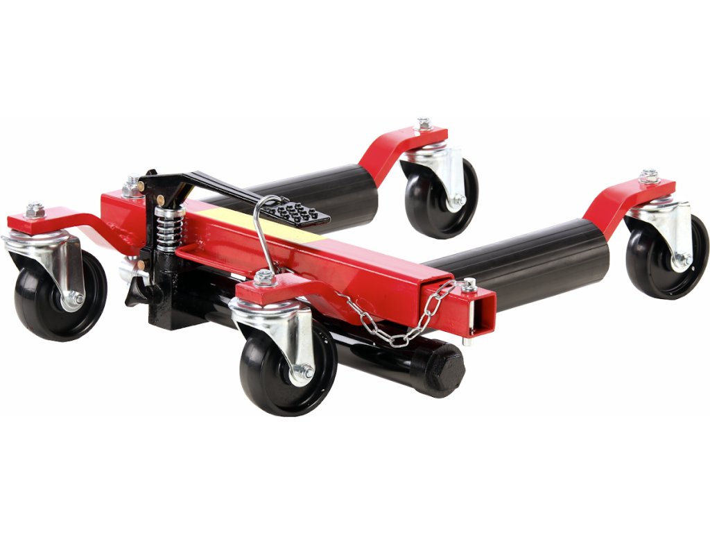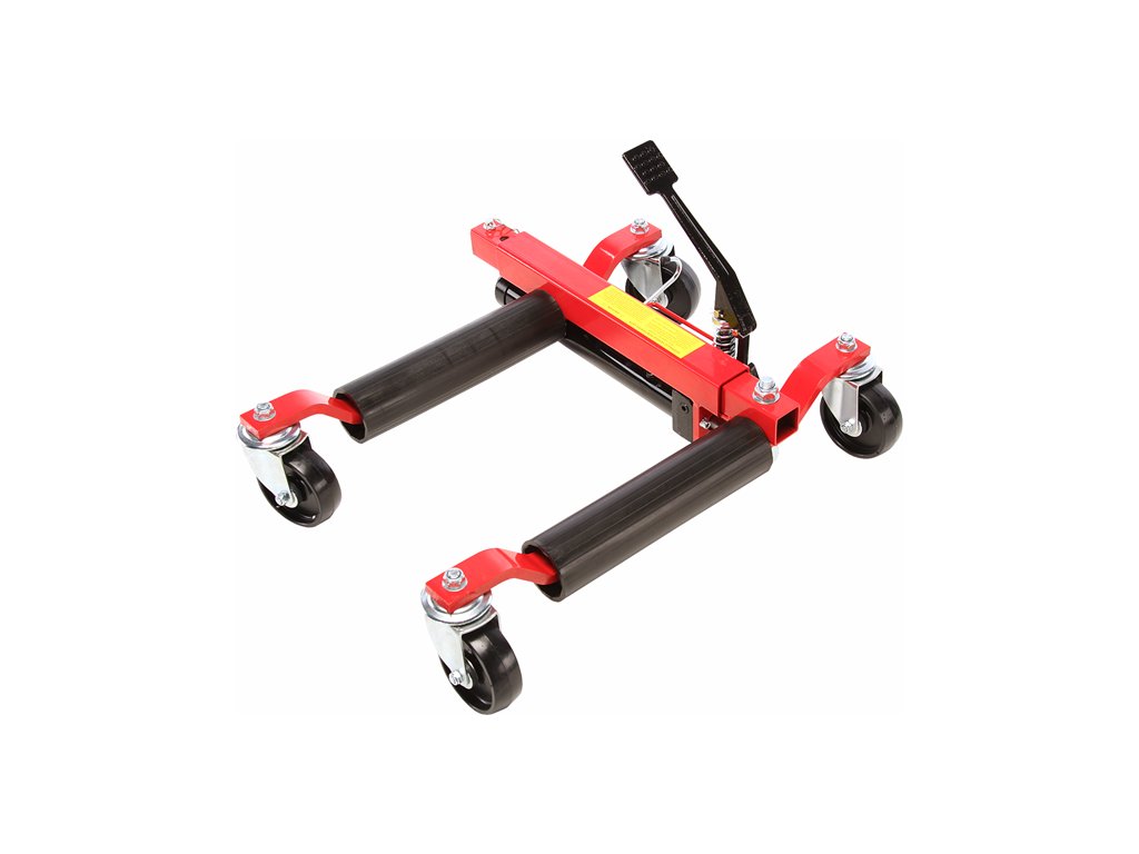 Spezieller hydraulischer Fahrzeugheber. Das gehobene Fahrzeug kann in alle Richtungen einfach bewegt werden (beim Einsatz von 4 Hebern) – sehr günstig bei engen Platzverhältnissen – z.B. auf einer Ausstellungsfläche, in der Werkstatt usw. Ideal für umgebaute Fahrzeuge – das Fahrzeug wird am Rad, nicht an der Karosserie gehoben, deren Stützpunkte sind bei getunten Fahrzeugen oft schwer zugänglich. Nach dem Anheben kann schon problemlos ein normaler Heber oder eine Stütze eingesetzt werden. Geeignet bis zur Reifenbreite 300 mm. Kolbenhub 345 – 620 mm. Tragfähigkeit 680 kg.