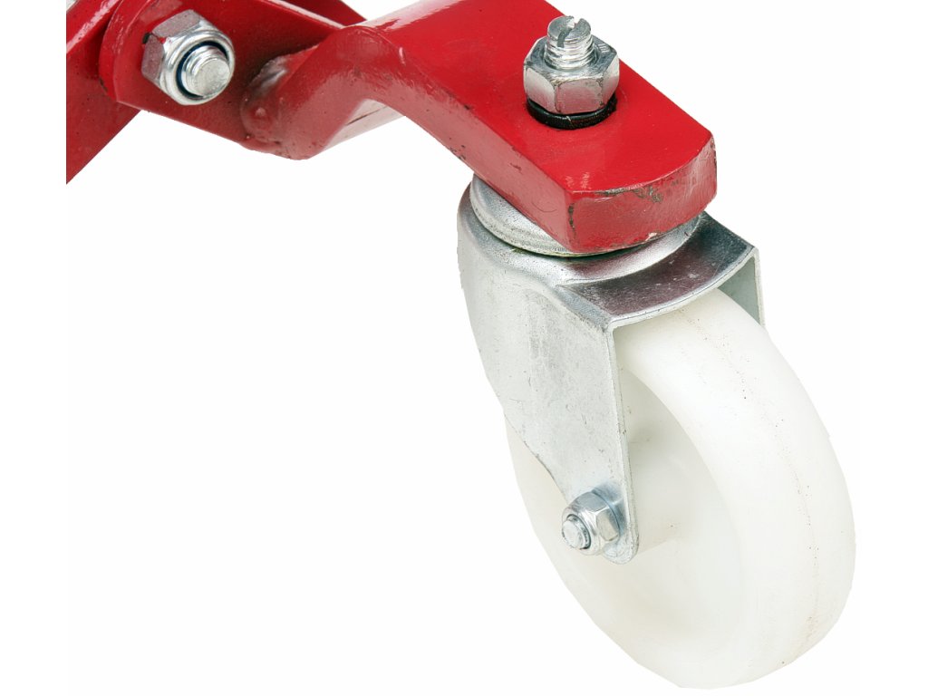 Spezieller mechanischer Fahrzeugheber. Heben/Senken wird durch Einstellbolzen umgeschaltet, Bewegung durch Fußhebel. Das gehobene Fahrzeug kann einfach in alle Richtungen bewegt werden (beim Einsatz von 4 Hebern), – sehr günstig bei engen Raumverhältnissen – z.B. für Ausstellungsfläche, Werkstatt usw. Der Heber ist für Arbeit auf getunten Fahrzeugen geeignet – das Fahrzeug wird am Rad, nicht an der Karosserie gehoben, deren Stützpunkte im Falle eines Tunings oft nur sehr schwierig zugänglich sind. Nach dem Anheben kann schon problemlos ein normaler Heber oder eine Stütze eingesetzt werden. Abstand Laufräder 475 mm, Stützrollen Breite 245 mm, Stützrollen Durchmesser 70 mm, Stützrollenabstand min. 330 mm, max. 660 mm. Fahrgestell mit Stahlrädern. Tragfähigkeit 450 kg/Stk. (4 Hebern max. 1 800 kg). Maße Verpackung 570 × 550 × 150 mm.