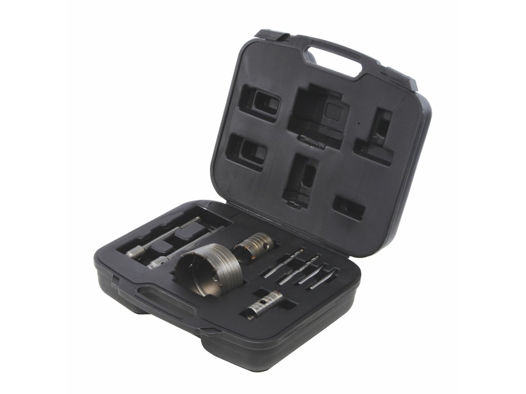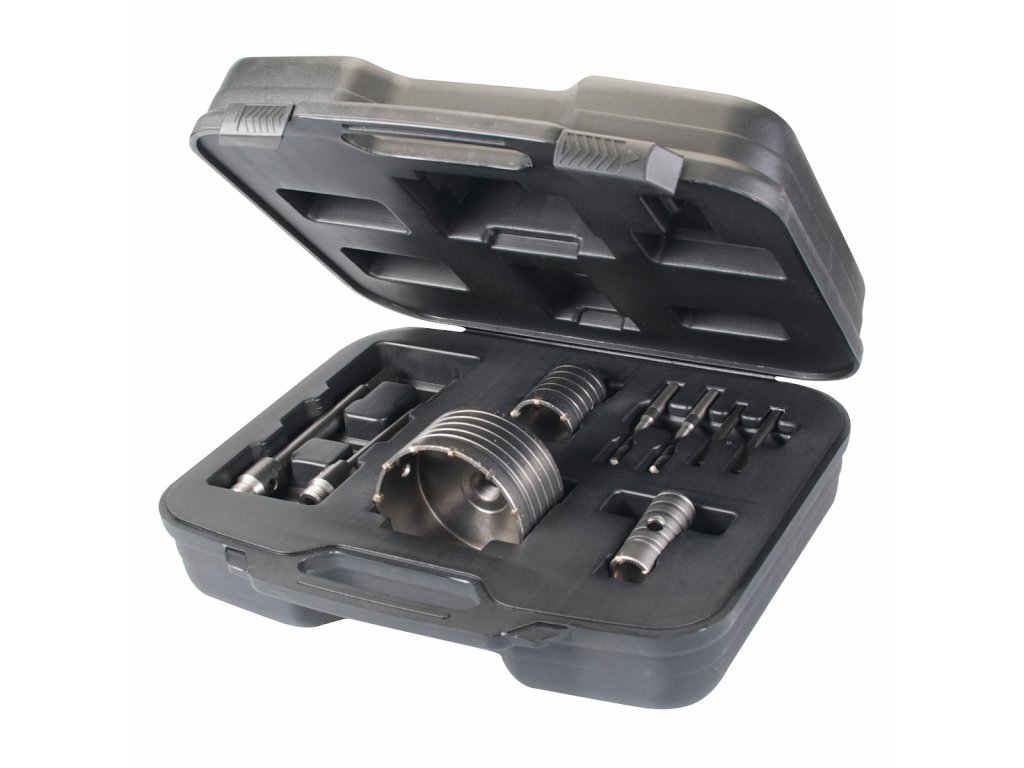 Kernbohrkrone zum Bohren sauberer Löcher in Mauerwerk. Verwendung mit 1/2" BSP-kompatiblen Dornen und Bohrern, die mit einer Sicherheitskupplung ausgestattet sind. Nicht mit Hämmern verwenden.