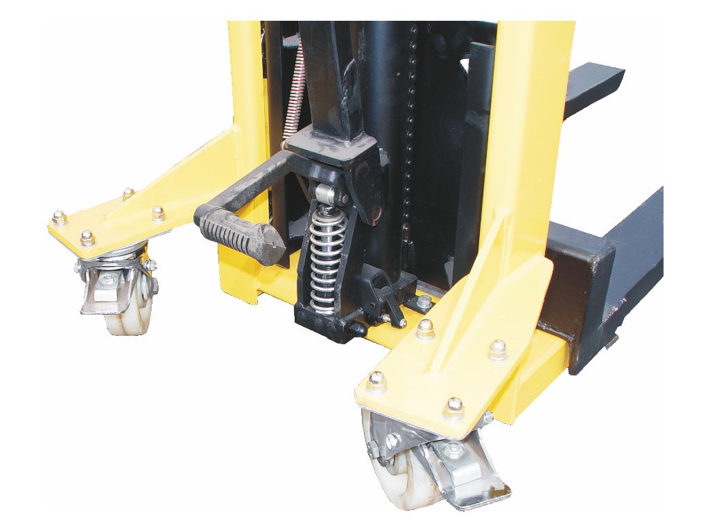 Der Hochhubpalettierungswagen ist mit einer Fußpumpe ausgestattet.