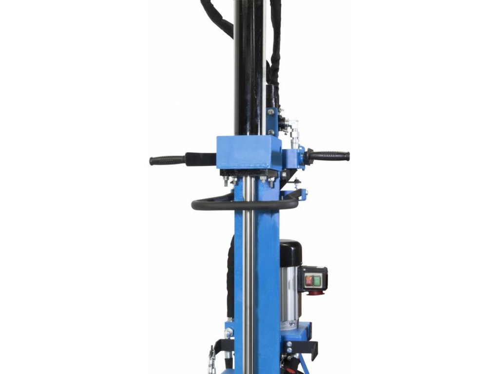 Sichere (beidhändige) Steuerung des Spalters über Bedienhebel; genaue Einstellung des Hubs des Spaltmessers entsprechend der tatsächlichen Länge der Stämme; Keilvorschub mit zwei Geschwindigkeiten*; langer (starker) Stammheber.