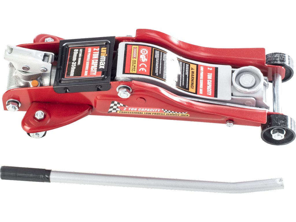 Hydraulischer Wagenheber mit 2.000 kg Tragkraft und niedrigem Profil ist die ideale Wahl für Fahrzeuge mit geringer Bodenfreiheit. Mit einer minimalen Hubhöhe von 89 mm und einer maximalen Hubhöhe von 359 mm ermöglicht er ein effizientes und sicheres Anheben von Autos. Er ist mit zwei größeren, festen Rädern und zwei kleineren, schwenkbaren Rollen ausgestattet, die eine einfache Handhabung und Stabilität während des Gebrauchs gewährleisten. Dieser Wagenheber ist ein unverzichtbares Werkzeug für jede Werkstatt oder Garage und bietet zuverlässige Leistung bei der Wartung und Reparatur von Fahrzeugen.