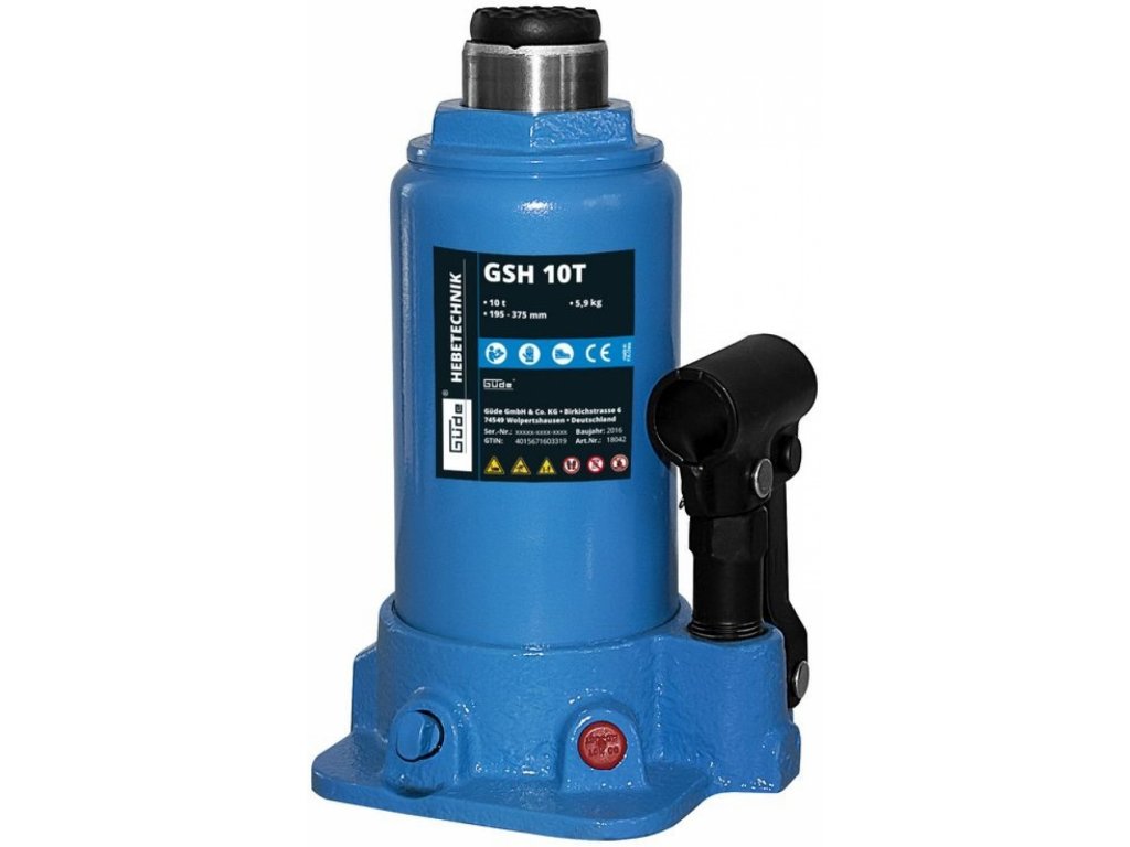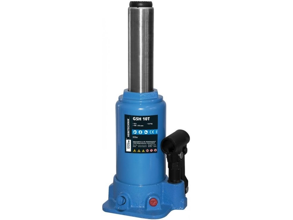 Kolbenhub 195 - 320 mm, genutete Auflageplatte ø 35 mm (→ höhenverstellbar, Bereich: 55 mm), sanftes Absenken der Last durch Drehen des Ablassventils.