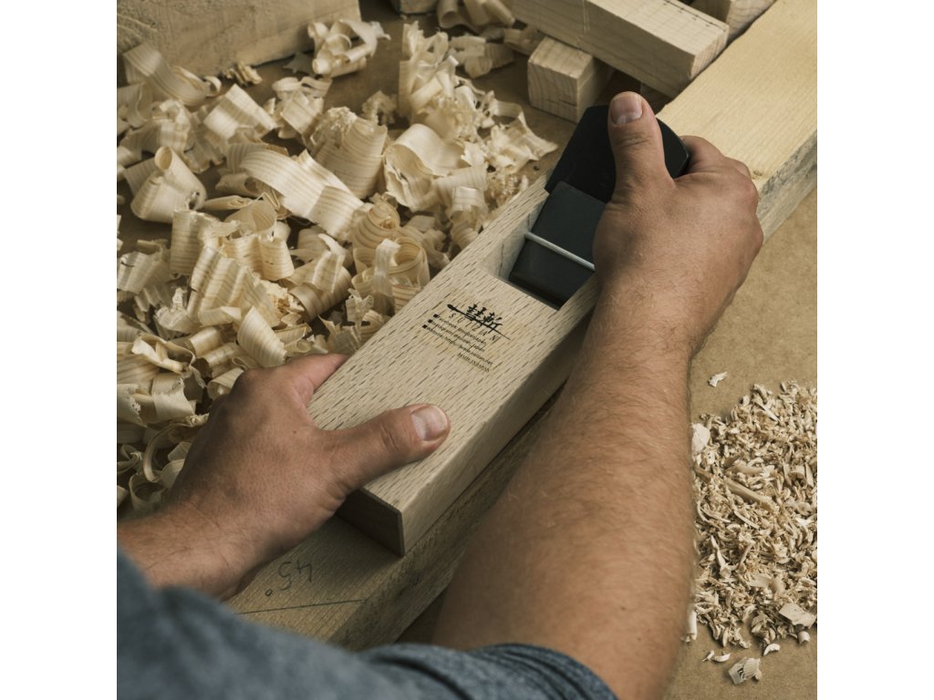 Hochwertiger und leichter japanischer Hobel der Marke SUIZAN. Hobel vom Typ Kanna haben eine sehr einfache Verarbeitung. Die Klinge besteht aus hochwertigem laminiertem, zweilagigem japanischem Stahl und muss vor dem ersten Gebrauch mit einem Hammerschlag am Körper des Hobels befestigt werden, wodurch Sie auch die Größe der Späne des Hobels anpassen können Material entfernt wird. Wenn Sie den Span ausdünnen möchten, schlagen Sie einfach auf den Körper des Hobels. Der Hobel ist für alle Arten von Zimmermannsarbeiten bestimmt – die Dicke des Spans und die Glätte der Oberfläche richten sich nach der persönlichen Einstellung des Messers. Idealerweise sollte das Messer 0,05 bis 0,2 mm aus dem Hobelkörper herausragen. Die Lasche erleichtert das Abbrechen der Späne und verhindert das Herausziehen von Fasern.