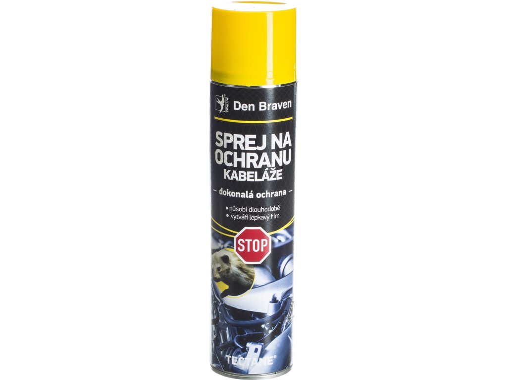 Dauerwirkender Spray, bildet schwachklebrige Schicht, die wichtigen Fahrzeugteile vor dem Durchnagen durch Nagetiere schützt. Es handelt sich vor allem um Stromleitungen, Zündkabel, Brems- und Kühlsystemschläuche, Keilriemen, Manschetten und Gummidichtungen und Federungssysteme. Schützt auch bei langdauerndem Regen. Aerosol-Spraydose 400 ml.