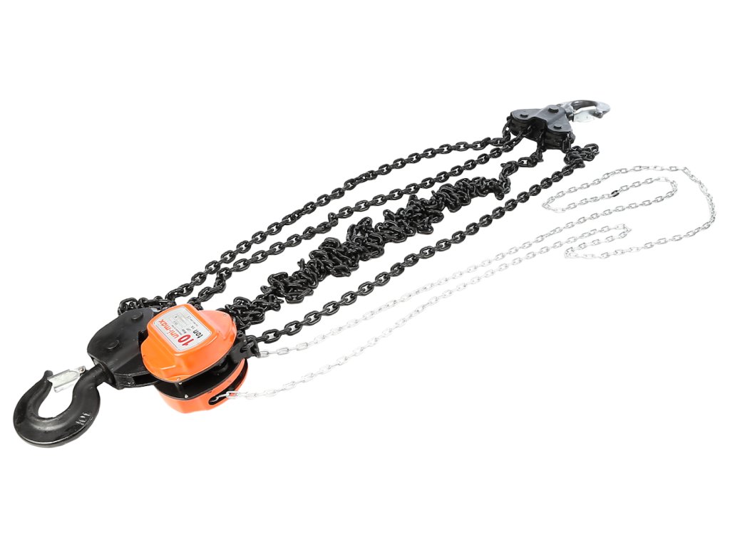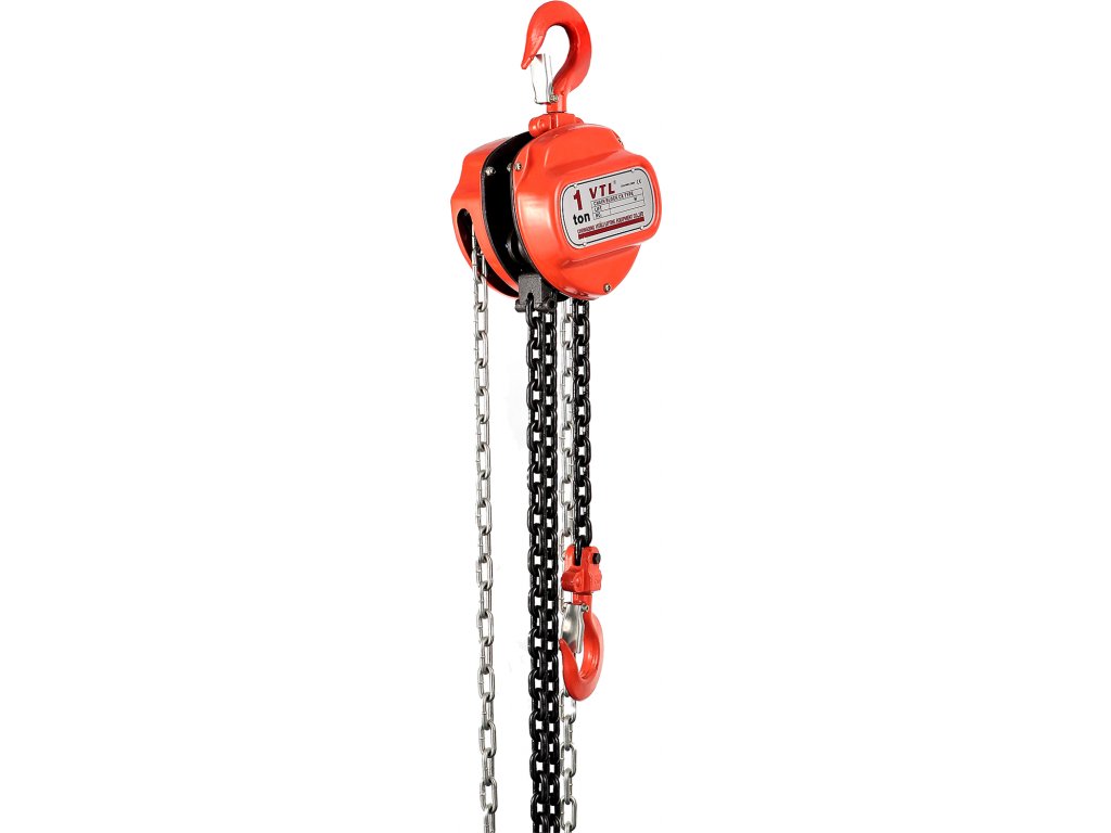 Der Kettenflaschenzug ist mit einer Gliederkette ausgestattet, er zeichnet sich durch einfache Konstruktion, robuste Ausführung und minimalen Wartungsaufwand aus. Die Effizienz des Zahnradgetriebes reduziert die Belastung erheblich, verbessert die Leistung und die erhöht die Betriebssicherheit durch die Hakenverschlüsse. Die Verformungsmarkierungen weisen auf die Überlastung der geschmiedeten Haken hin. Min. Hakenabstand 700 mm; Lochbreite im Haken 64 mm; Gesamtbreite 388 mm; Tiefe 172 mm.