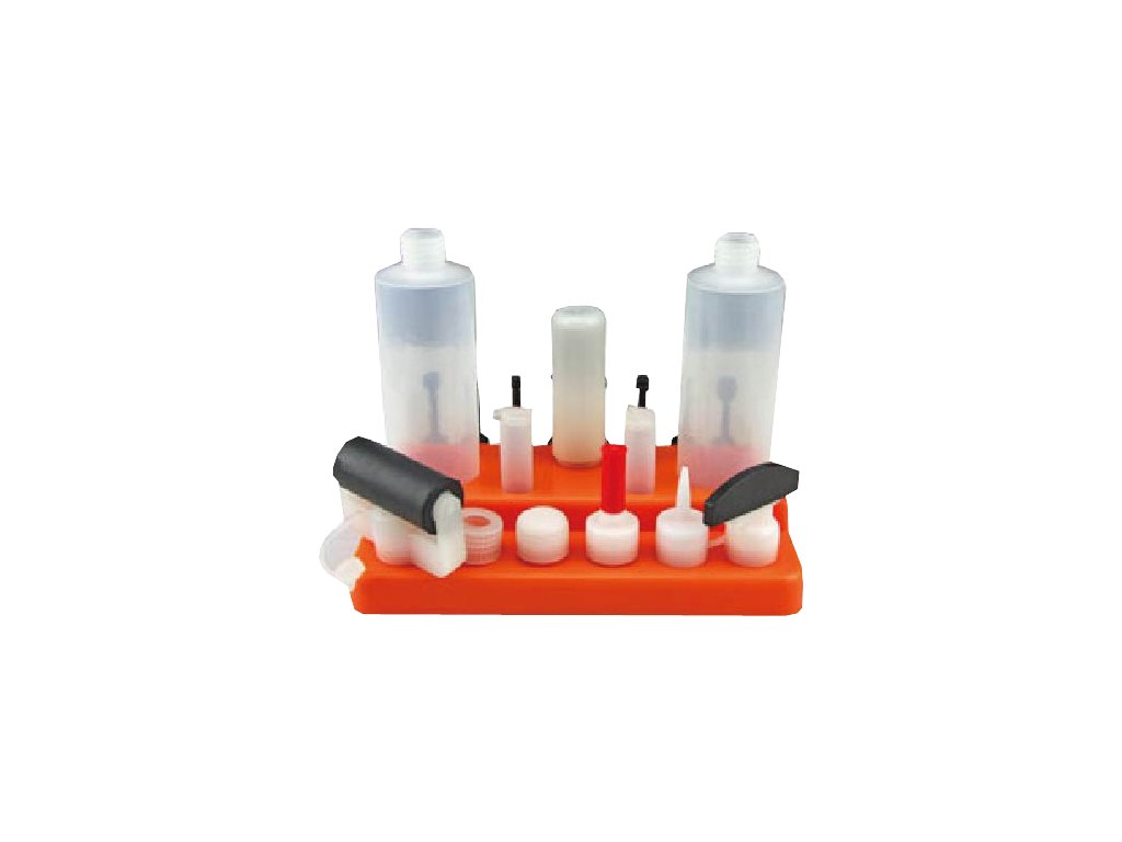 Enthält 2 Kleberbehälter, eine Rolle, einen Spatel und diverse Aufsätze und Applikatoren zum sauberen Kleben. In einer Kunststoffbox verpackt, die gleichzeitig als Ständer dient.